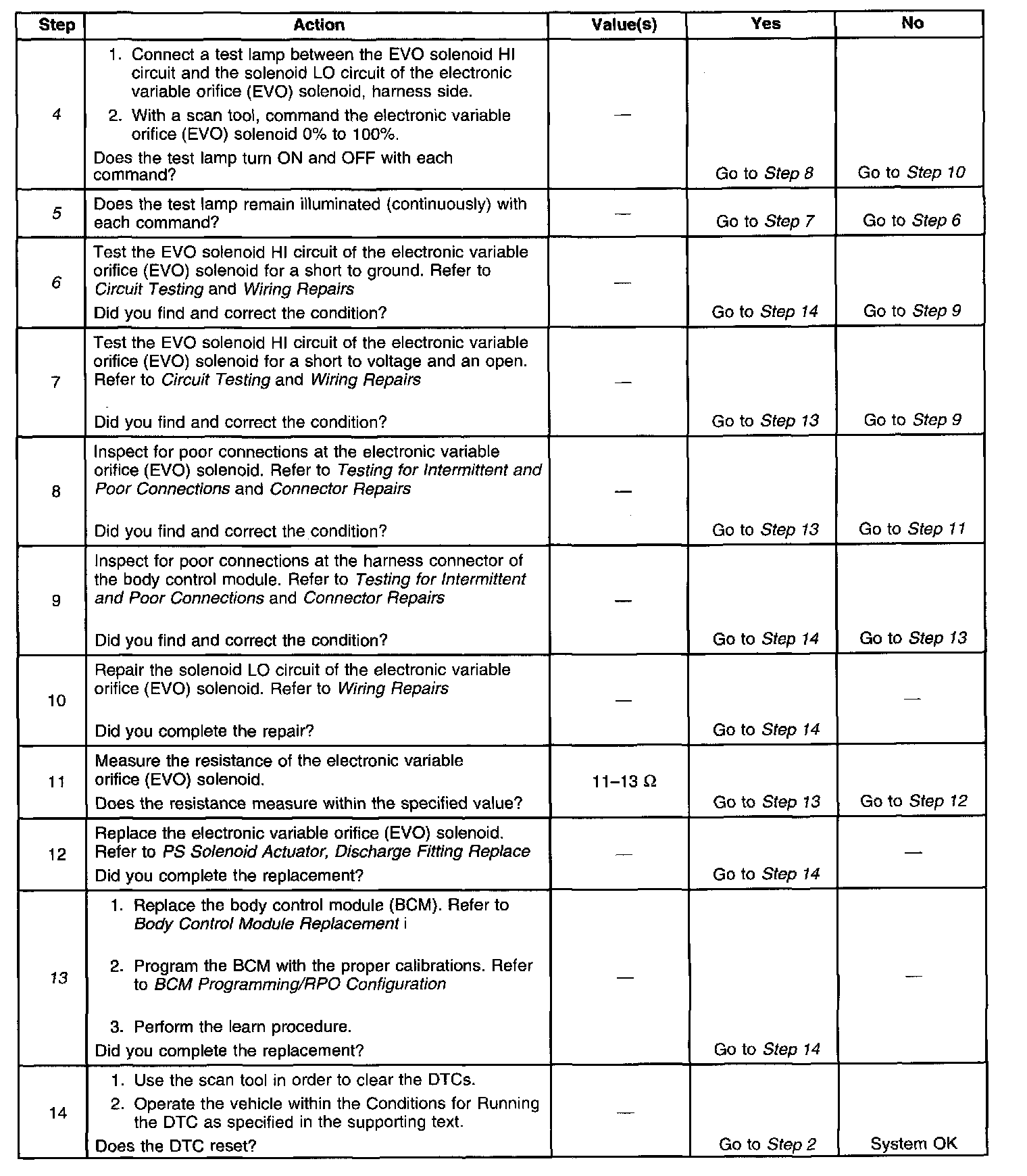 4. Tests for an open in the ground circuit to the Electronic Variable Orifice (EVO) solenoid.