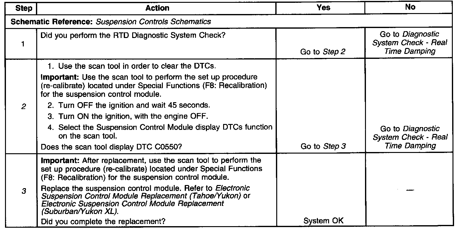 Important: Calibrate the suspension control module before replacement and cycle the ignition off and on to see if the DTC C0550 resets.