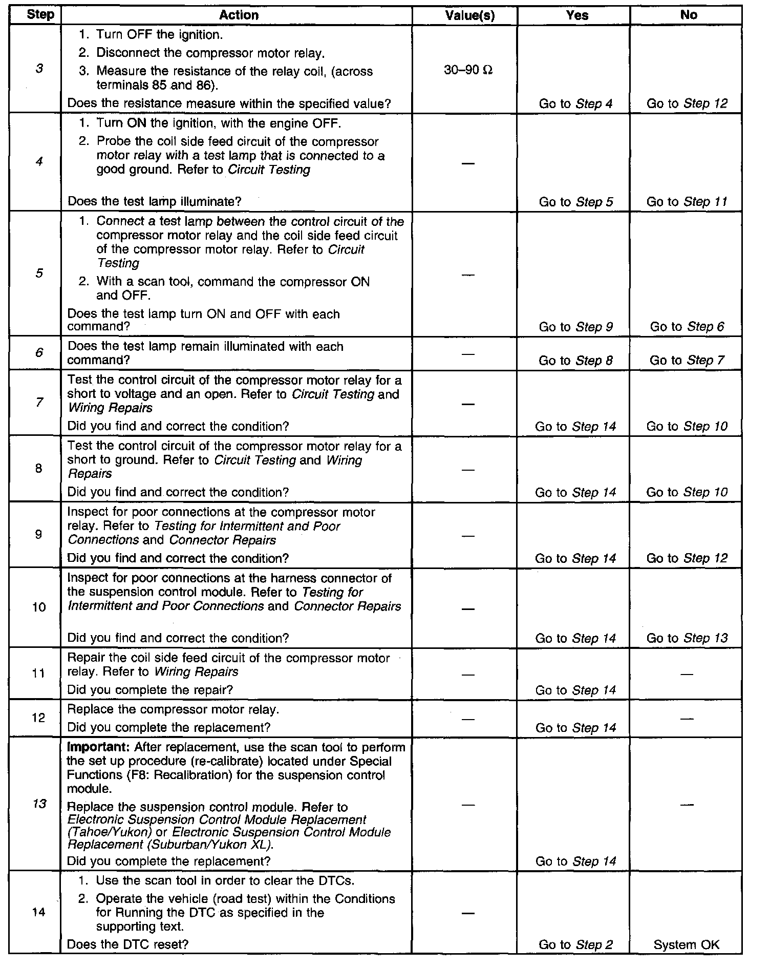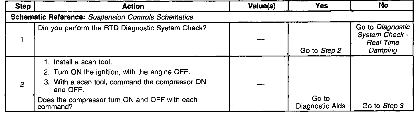 ^ The suspension control module no longer detects a open, short to ground, or a short to battery in the control circuit of the compressor motor relay.