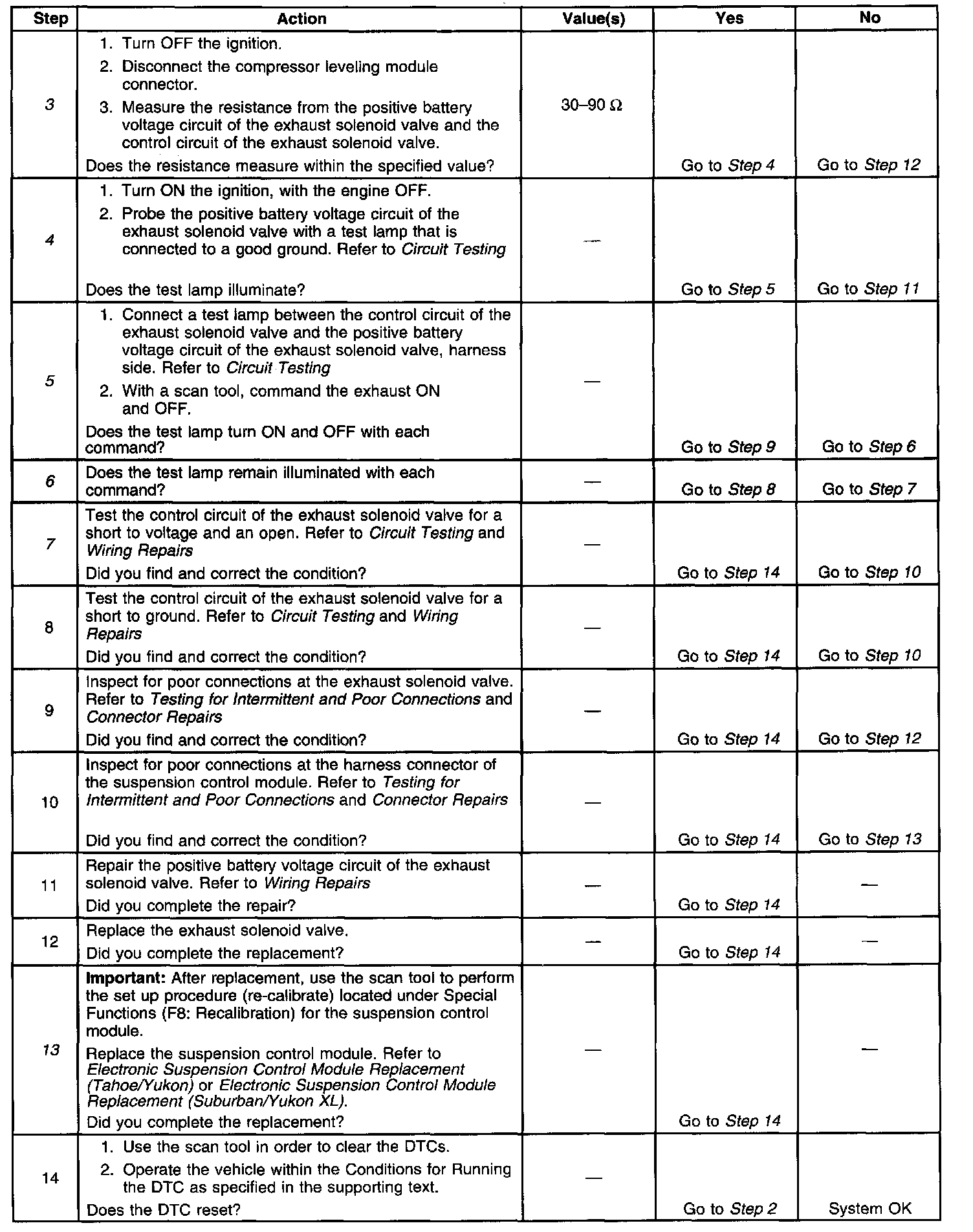 ^ The suspension control module no longer detects a open, short to ground, or a short to battery in the control circuit of the exhaust solenoid valve.