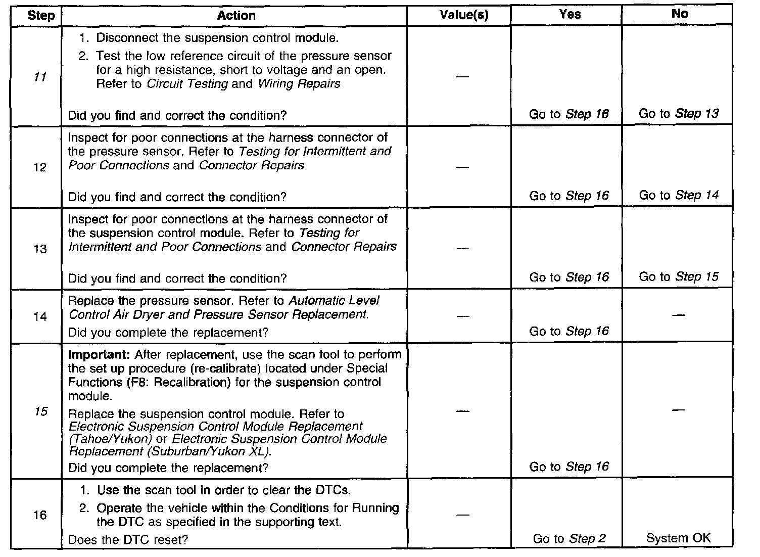 ^ The suspension control module no longer detects the malfunction that caused the DTC to set.
