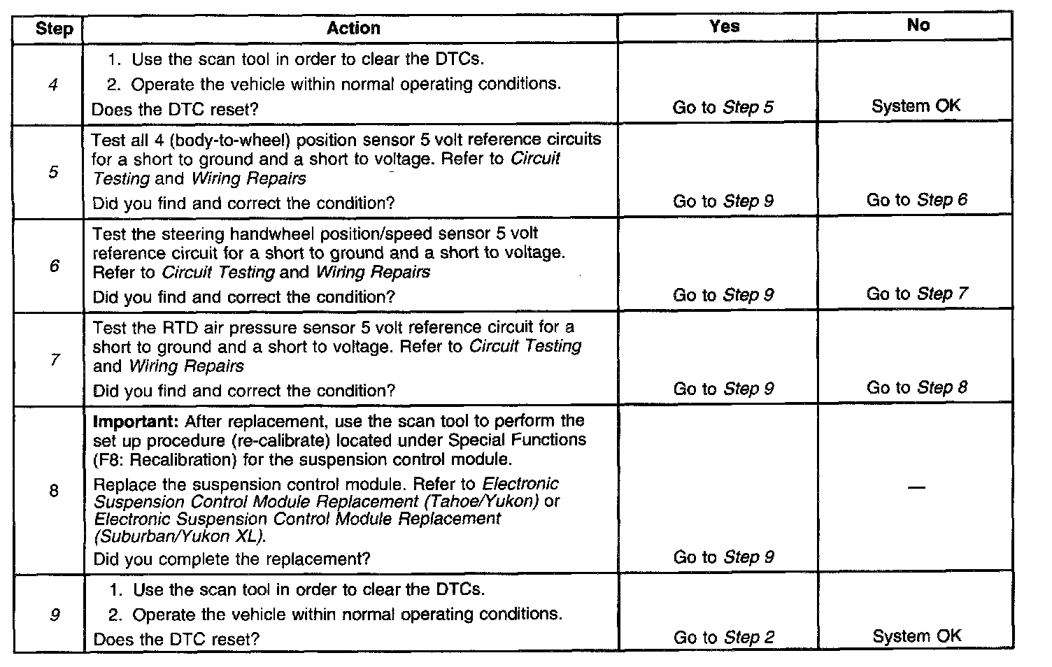 - A short to ground in any one of the (body-to-wheel) position sensor reference voltage circuit.