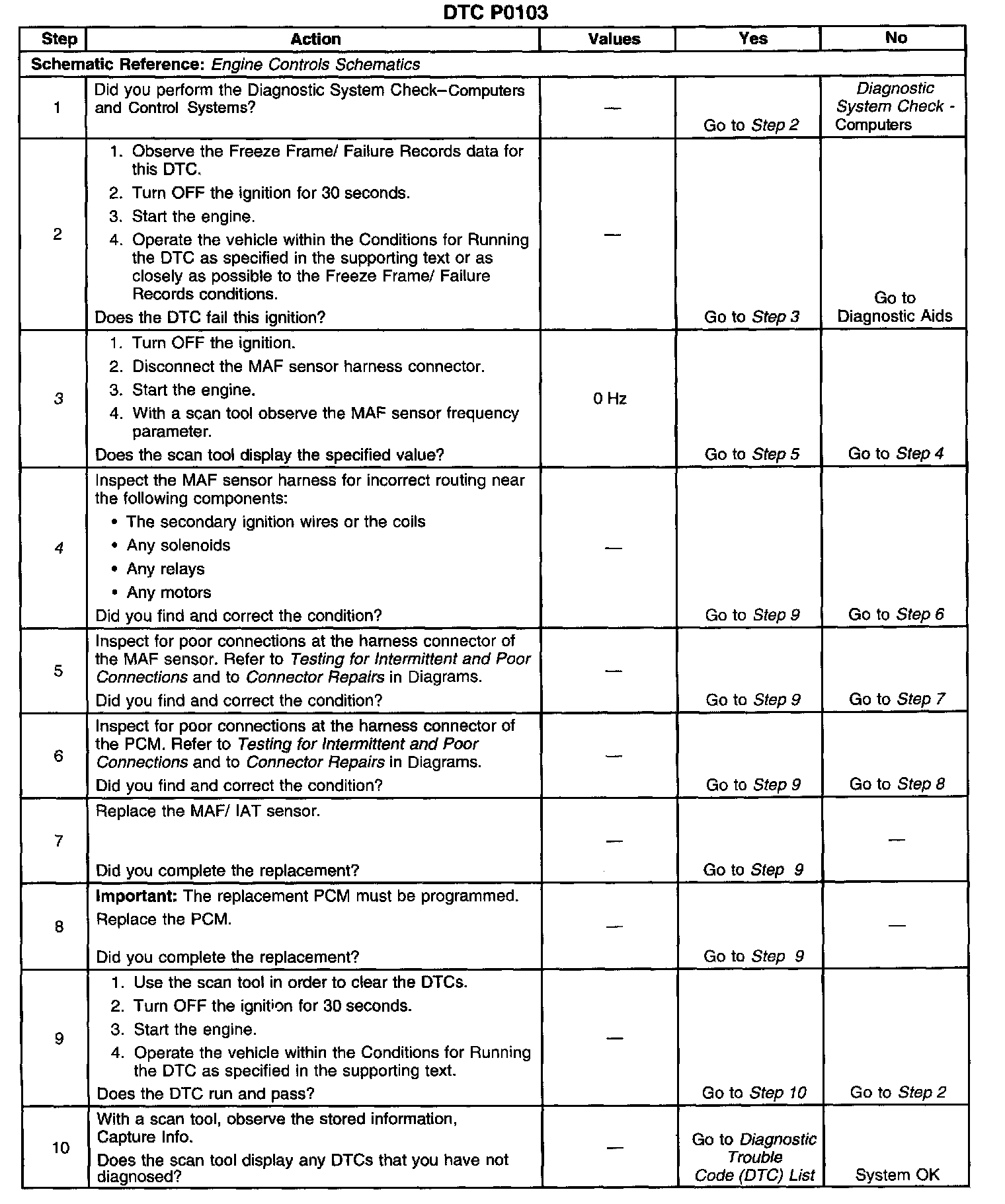 ^ A poor connection in the ignition positive voltage circuit of the MAF sensor can cause DTC P0103 to set.