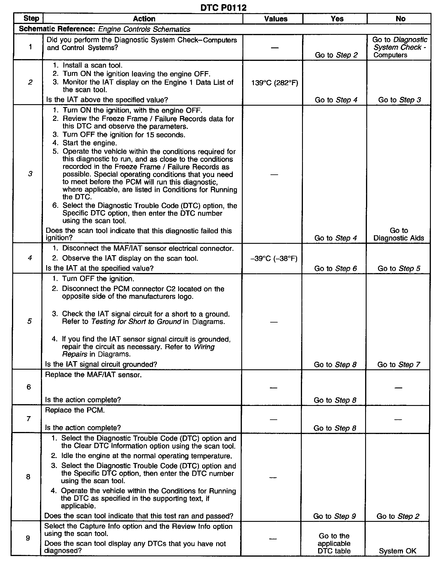 ^ If you determine that the DTC occurs intermittently, performing the P1112 diagnostic table may isolate the cause of the fault.