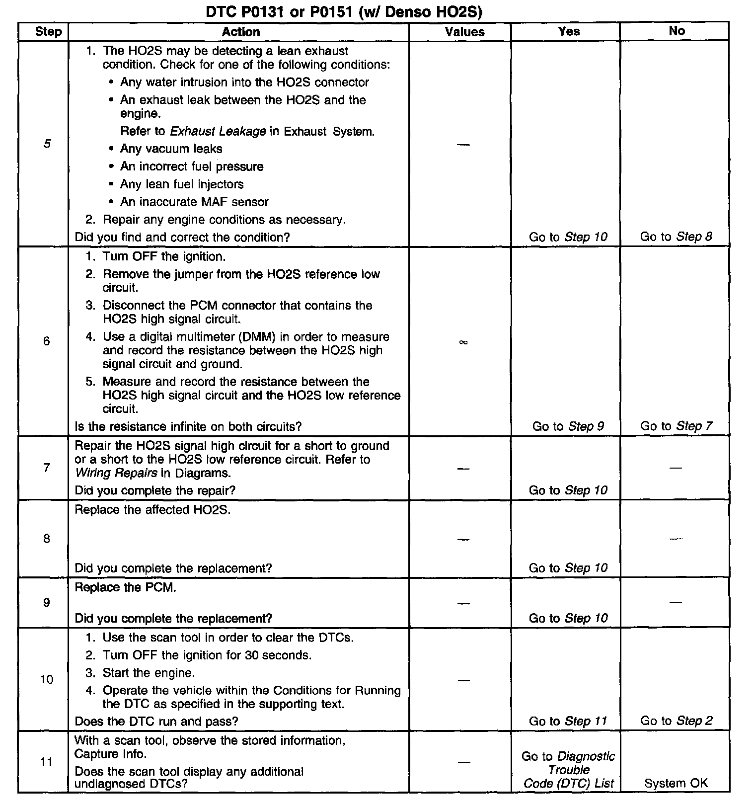 ^ Any exhaust leaks. If there is an exhaust leak, the engine may pull the outside air into the exhaust and past the sensor. Refer to Exhaust Leakage in Exhaust System.