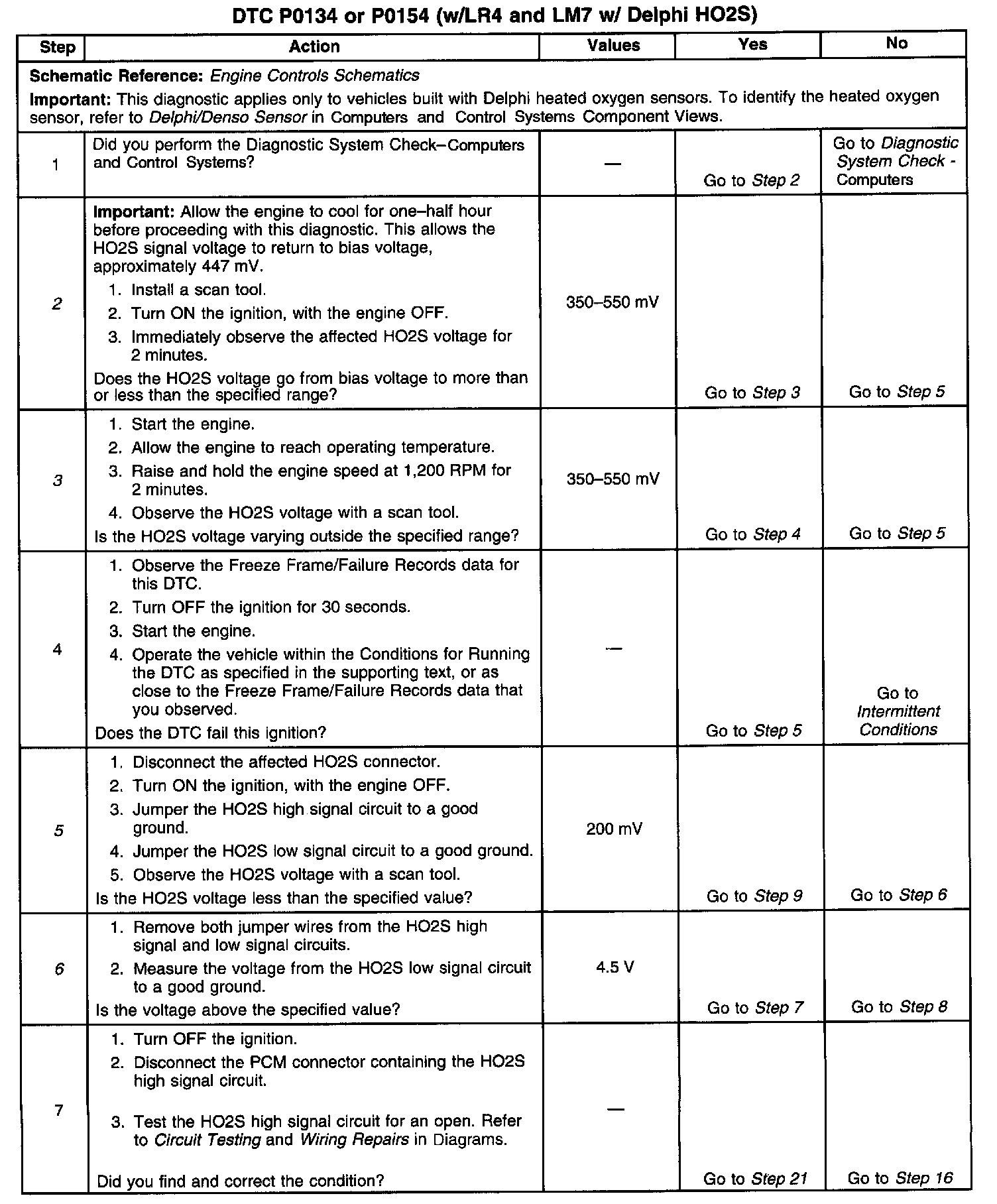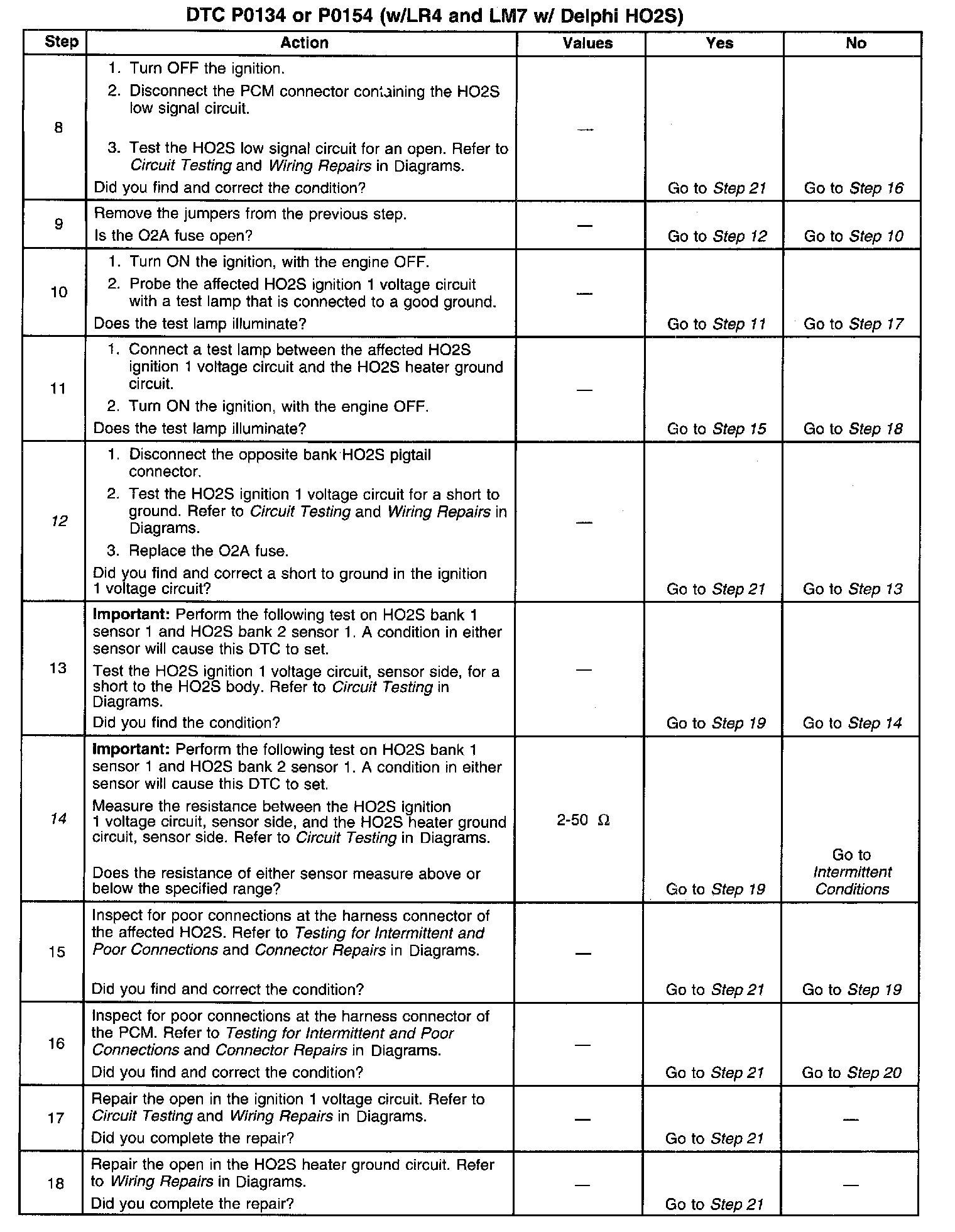 P0134 or P0154 (W/LR4 and LM7 W/ Delphi HO2S)