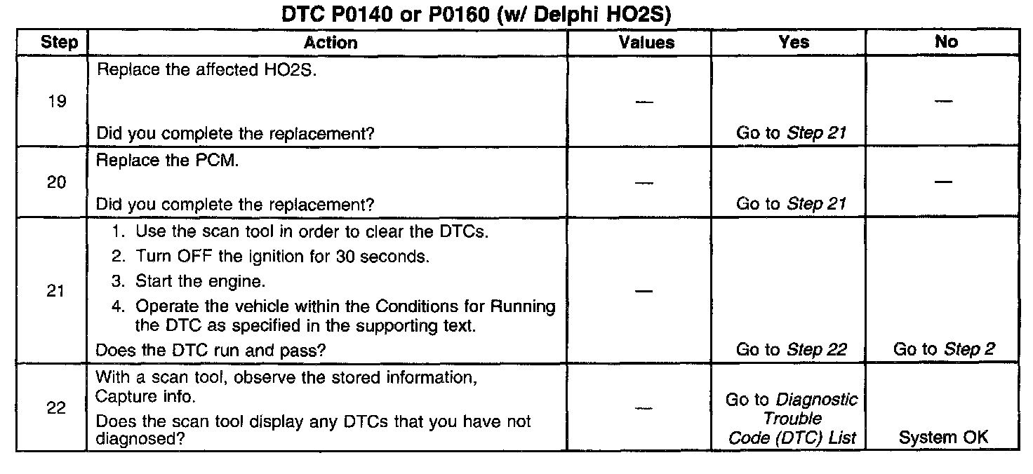 ^ DTCs P0101, P0102, P0103, P0106, P0107, P0108, P0112, P0113, P0117, P0118, P0121, P0122, P0123, P0135, P0141, P0155, P0161, P0200, P0300, P0401, P0404, P0405, P0410, P0440, P0442, P0446, P0452, P0453, P1120, P1125, P1220, P1221, 1258, P1404, P1415, P1416, P1514, P1515, P1516, P1517, or P1518 are not set.