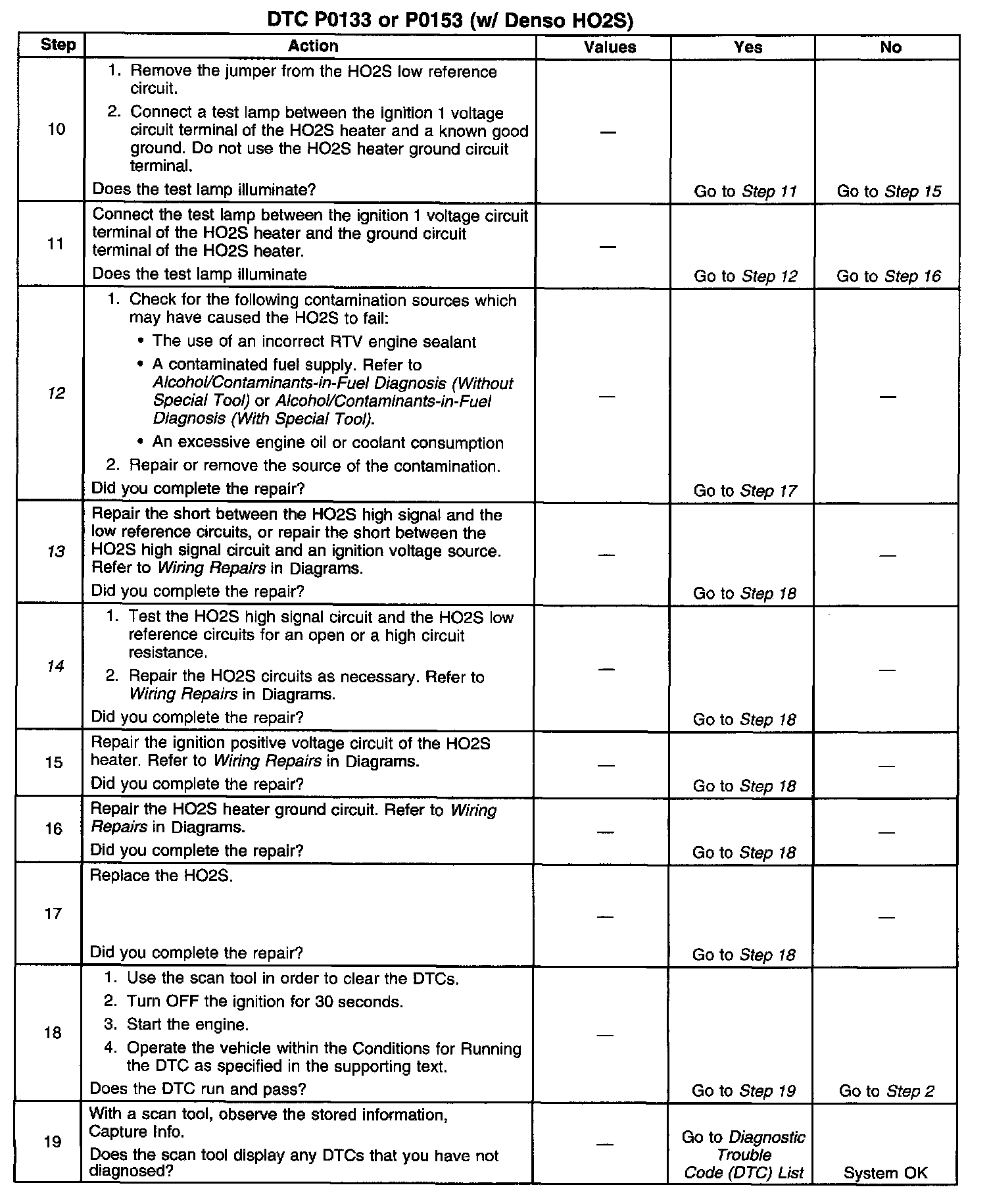 13. If the voltage observed in step 8 is less than the range specified, a short between the high signal circuit and the low reference circuits, or a short between the high signal circuit and ground is indicated. With the HO2S and the PCM disconnected, the resistance between the high signal circuit and low reference circuits and the resistance between the high signal circuit and ground should measure infinite.