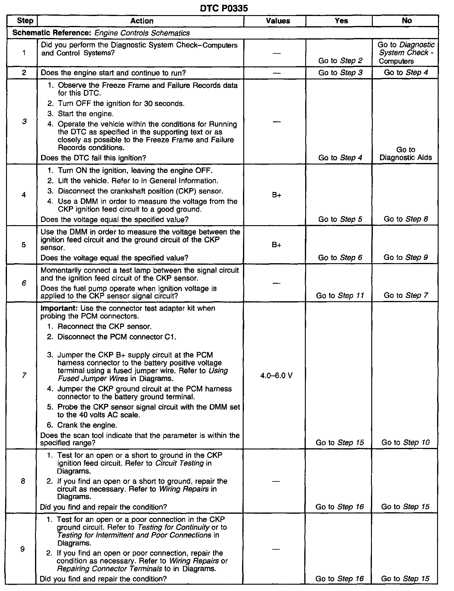 6. This step simulates a CKP sensor signal to the PCM. If the PCM receives the signal, the fuel pump will operate for about two seconds. If the fuel pump operates, the condition is either terminal contact at the CKP sensor, the CKP sensor or, the CKP sensor reluctor wheel.