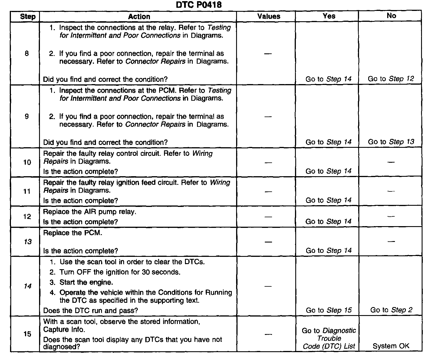 13. If no trouble is found in the control circuit or the connection at the PCM, the PCM may be faulty. However, this is an extremely unlikely failure.