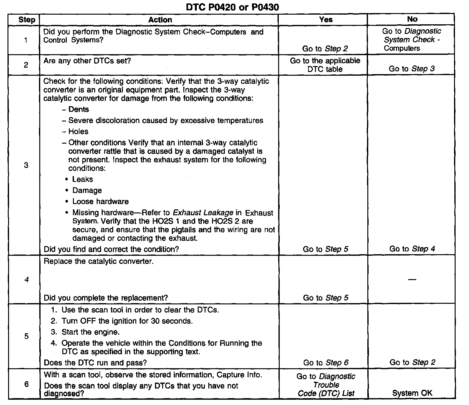 CIRCUIT DESCRIPTIONIn order to maintain low emissions of Hydrocarbons (HC), Carbon Monoxide (CO), and Oxides Of Nitrogen (NOx), the engine controls system uses a 3-way catalytic converter. The catalyst within the converter promotes a chemical reaction, which oxidizes the HC and CO that are present in the exhaust gas. This reaction converts these chemicals into harmless water vapor and carbon dioxide. The catalyst also reduces the NOx which converts into nitrogen. The Powertrain Control Module (PCM) monitors this process using Bank 1 of the HO2S 2, which is located in the exhaust stream past the 3-way catalytic converter. Bank 1 of the HO2S 2 produces an output signal which indicates the oxygen storage capacity of the catalyst. This determines the catalyst's ability to effectively convert the exhaust emissions. If the catalyst is functioning correctly, the Bank 1 of the HO2S 2 signal will be far less active than the signal that is produced by Bank 1 of the HO2S 1. This indicates that the 3-way catalytic converter's oxygen storage capacity is below an acceptable threshold.