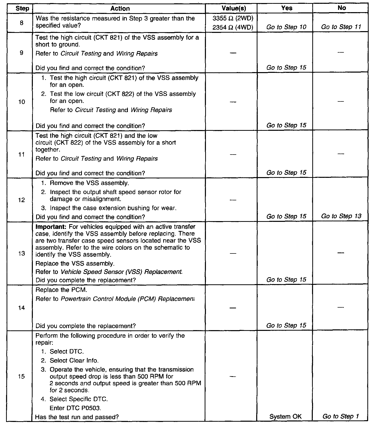 ^ The PCM stores DTC P0503 in PCM history during the second consecutive trip in which the Conditions for Setting the DTC are met.