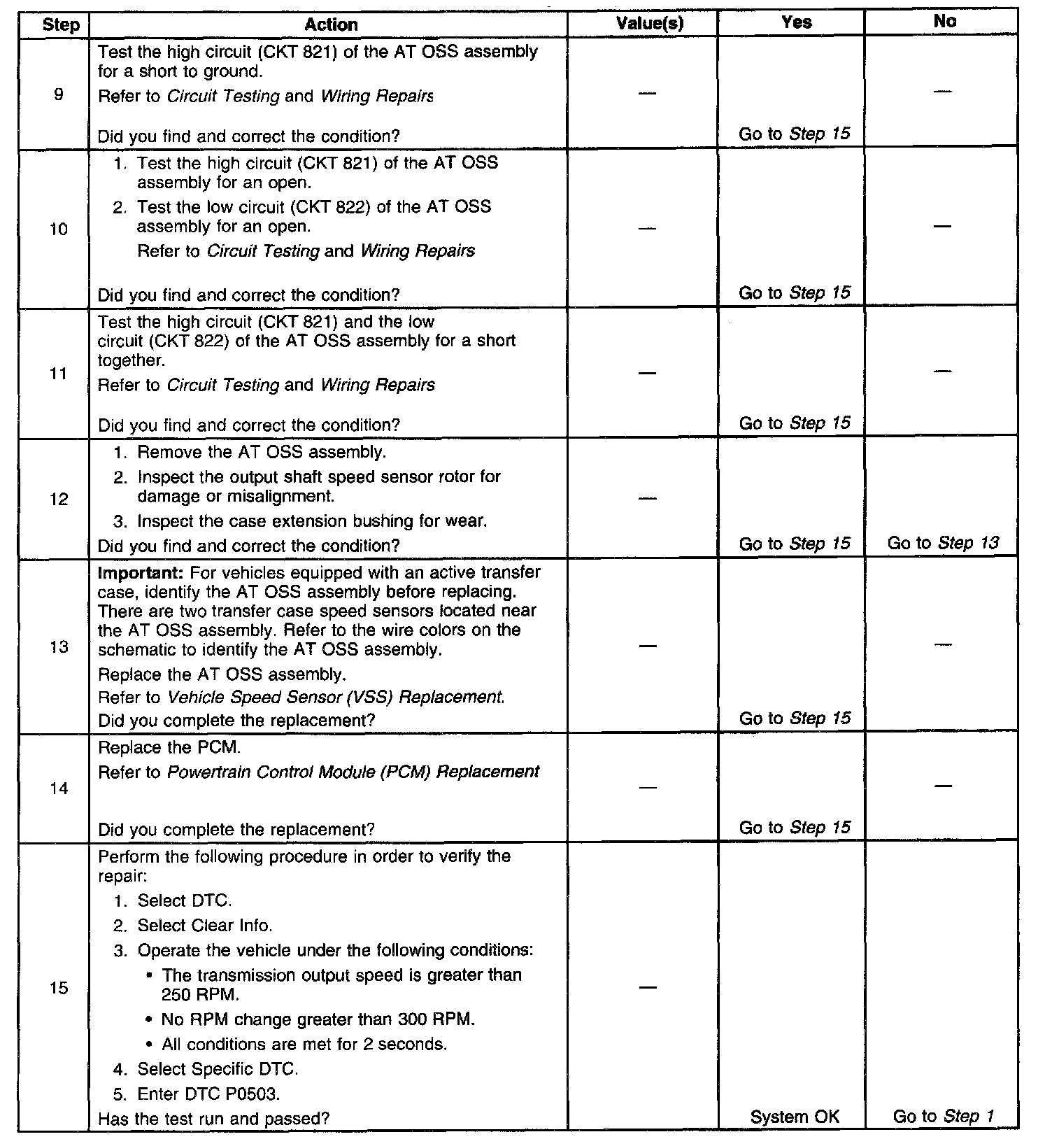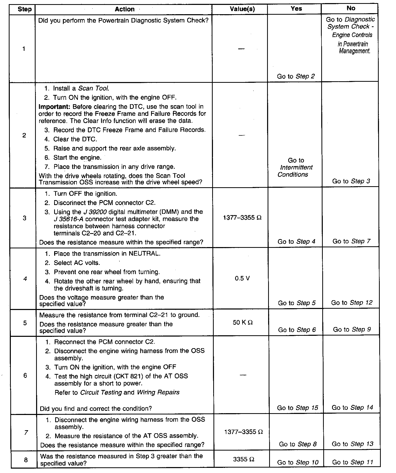 4. This step tests the AT OSS sensor and the circuit.