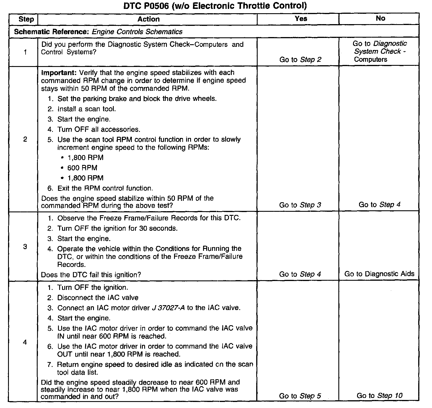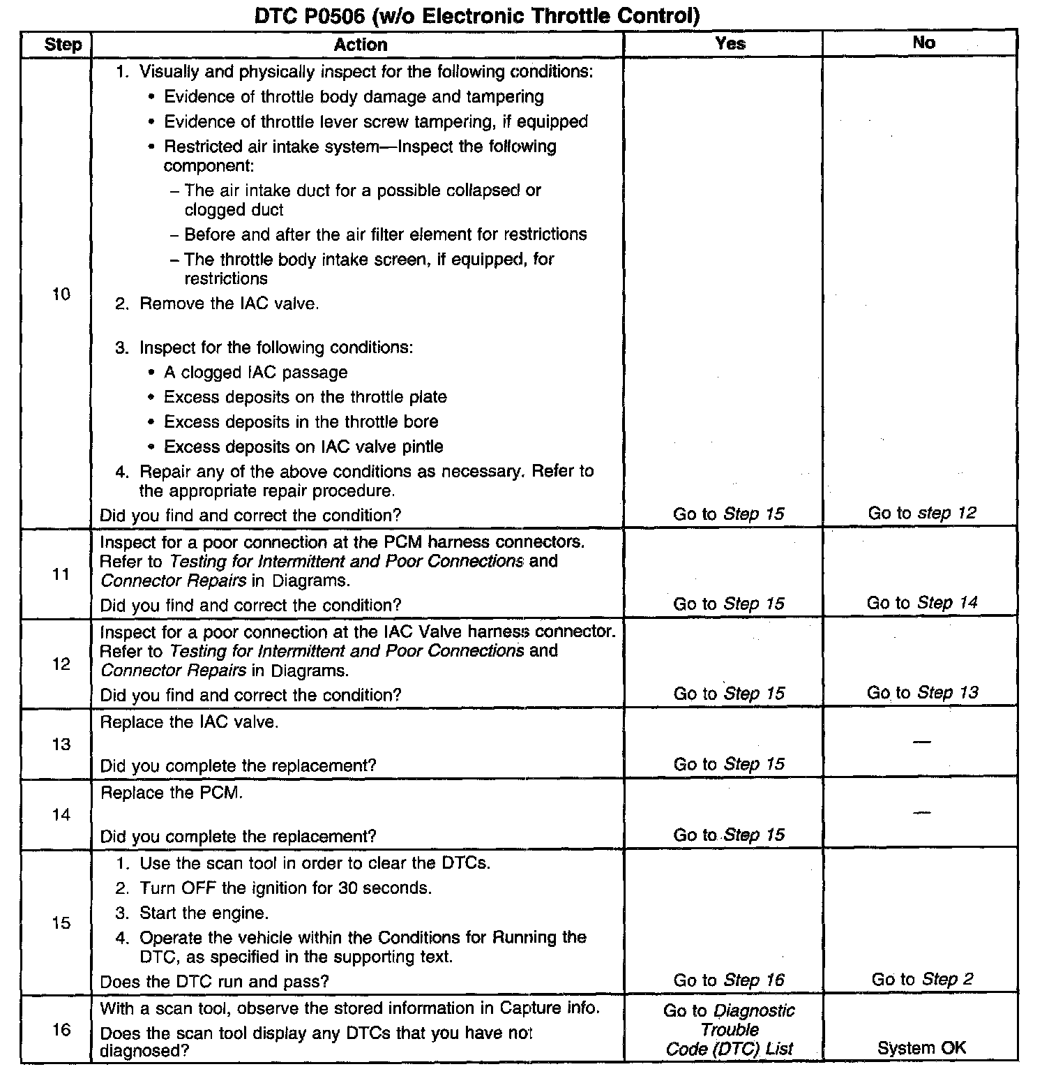 P0506 (w/o Electronic Throttle Control)