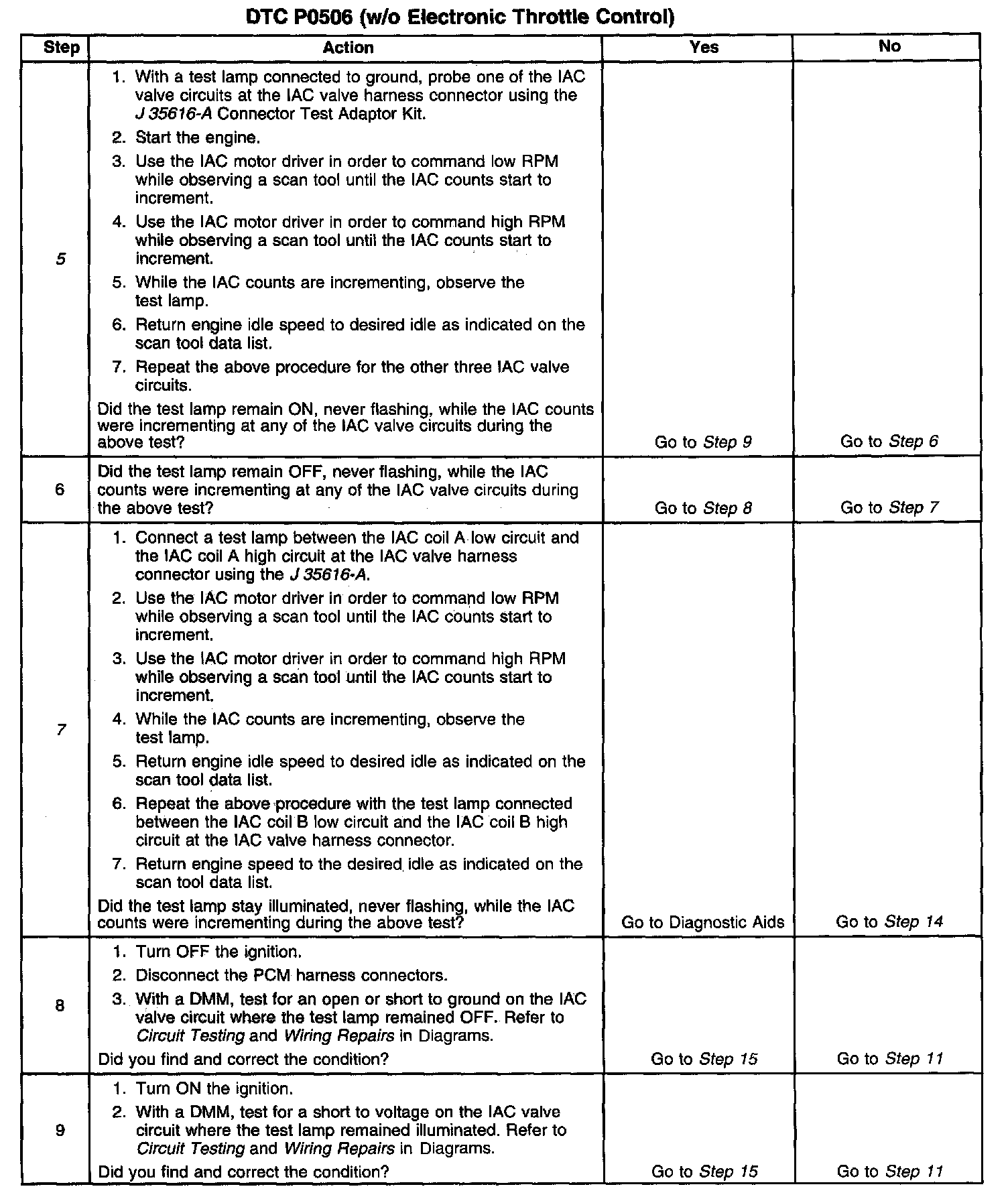 5. This test will determine the ability of the engine controller and IAC valve circuits to control the IAC valve.