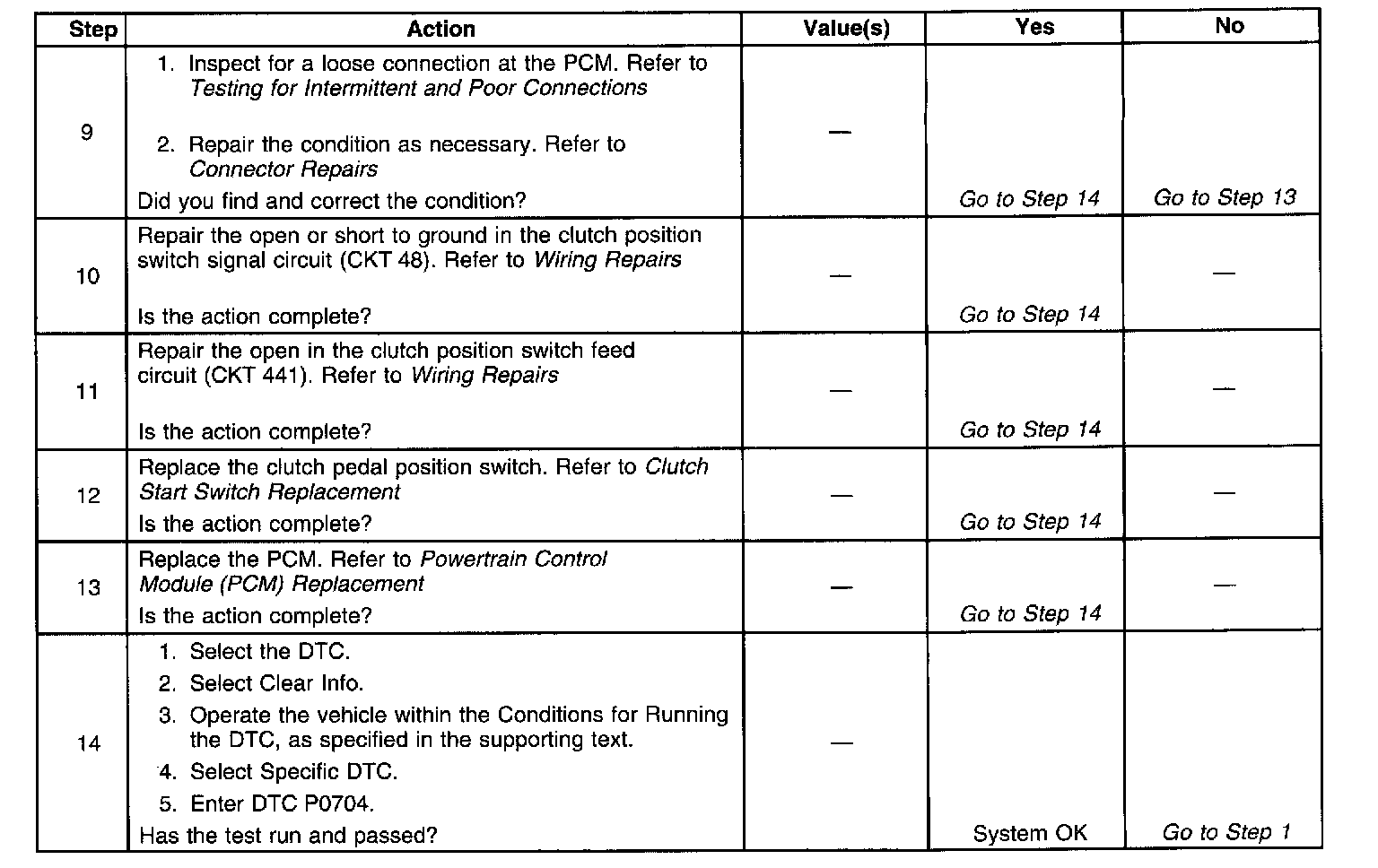 If the Powertrain Control Module (PCM) detects a specified number of vehicle speed transitions without detecting a clutch switch transition, DTC P0704 will set. DTC P0704 is a type B DTC.
