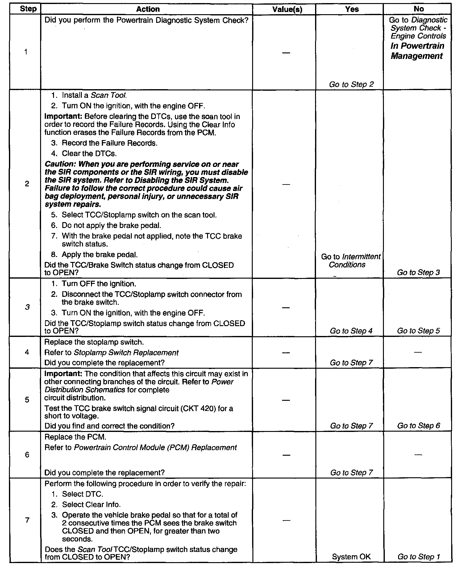 ^ The PCM detects a closed TCC/Stoplamp switch circuit (12 volts) during decelerations.