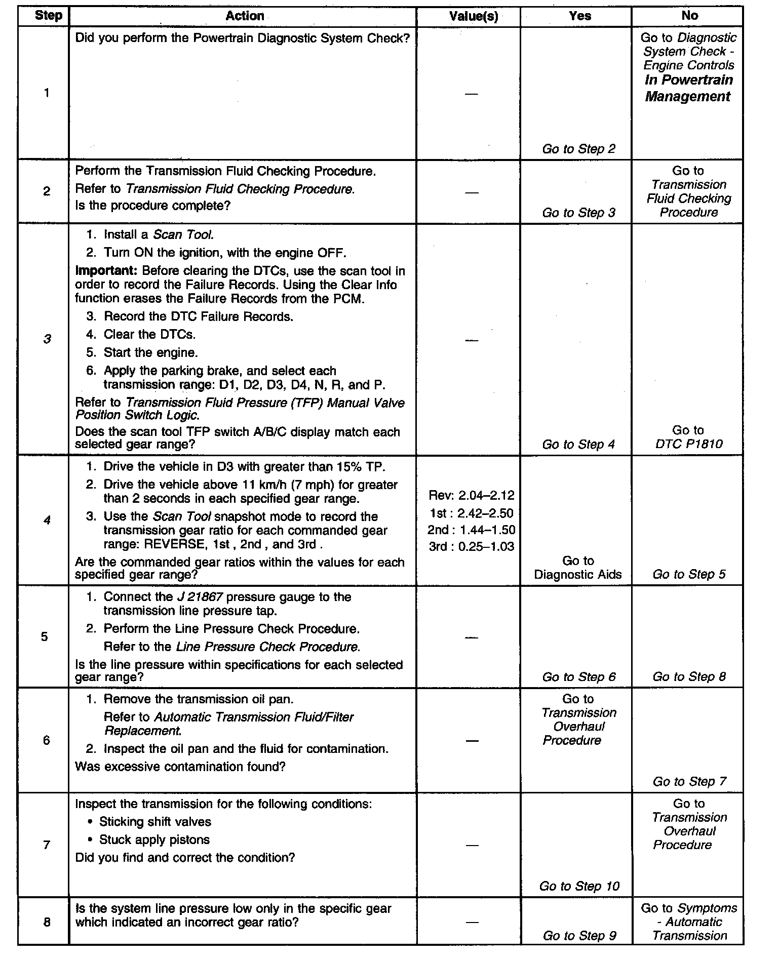 3. This step tests the indicated range signal to the actual selected range. A faulty TFP manual valve position switch could set DTC P1810.