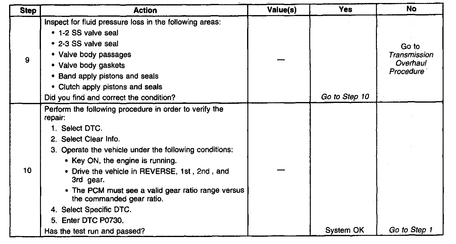 If the PCM detects an unknown transmission gear ratio, then DTC P0730 sets. DTC P0730 is a type C DTC.