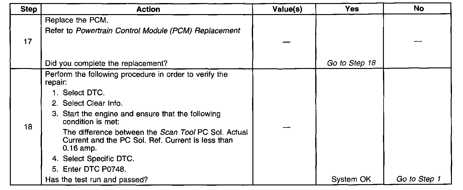 When the PCM detects a continuous open or short in the PC solenoid valve circuit, then DTC P0748 sets. DTC P0748 is a type C DTC.