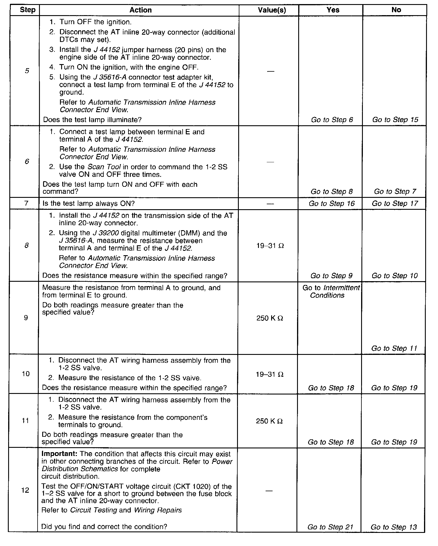 5. This step tests for power to the 1-2 SS valve from the ignition through the fuse.