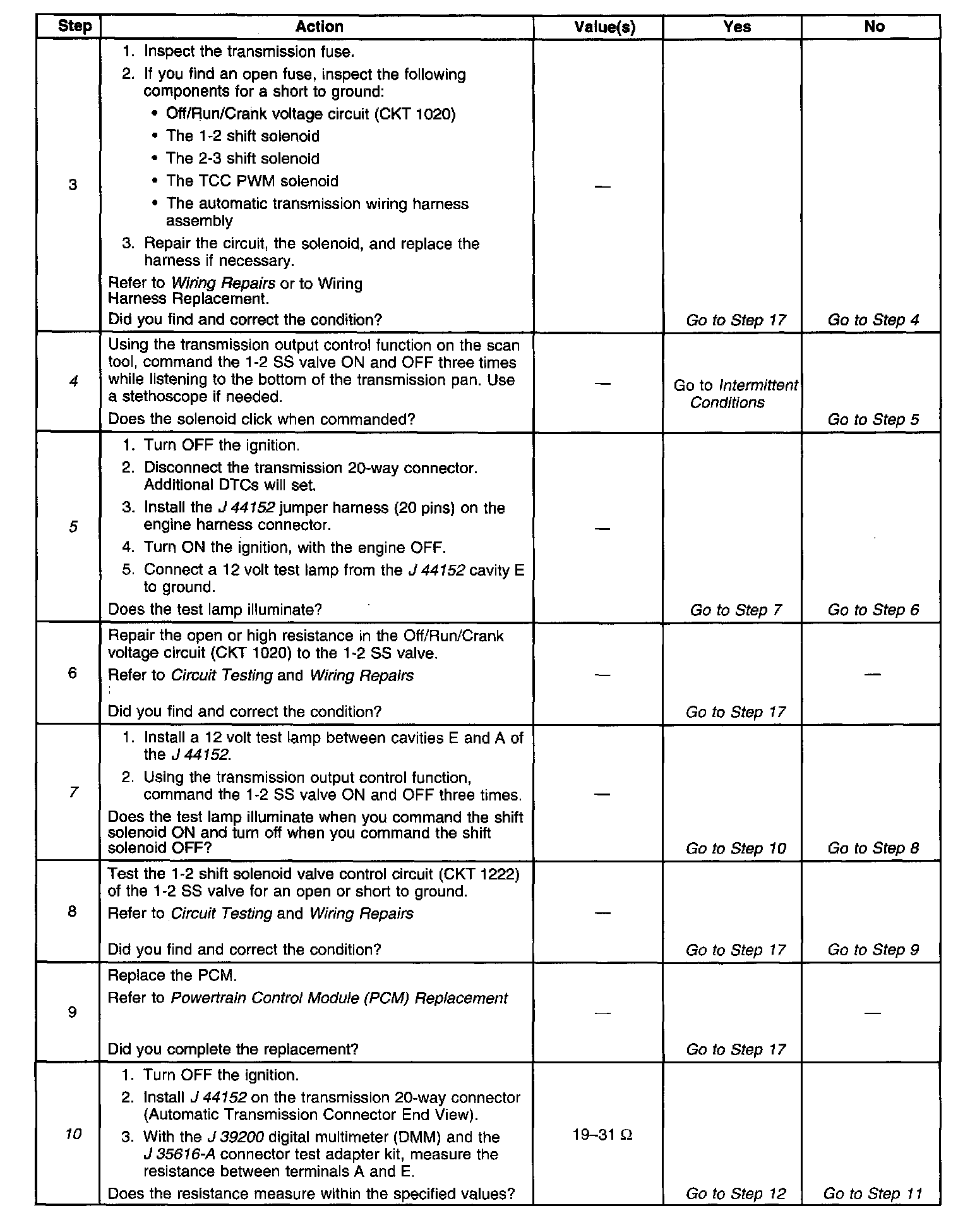 ^ An open ignition feed on the Off/Run/Crank voltage circuit (CKT 1020) can cause multiple DTCs to set. Refer to Shift Solenoid Valve State and Gear Ratio.
