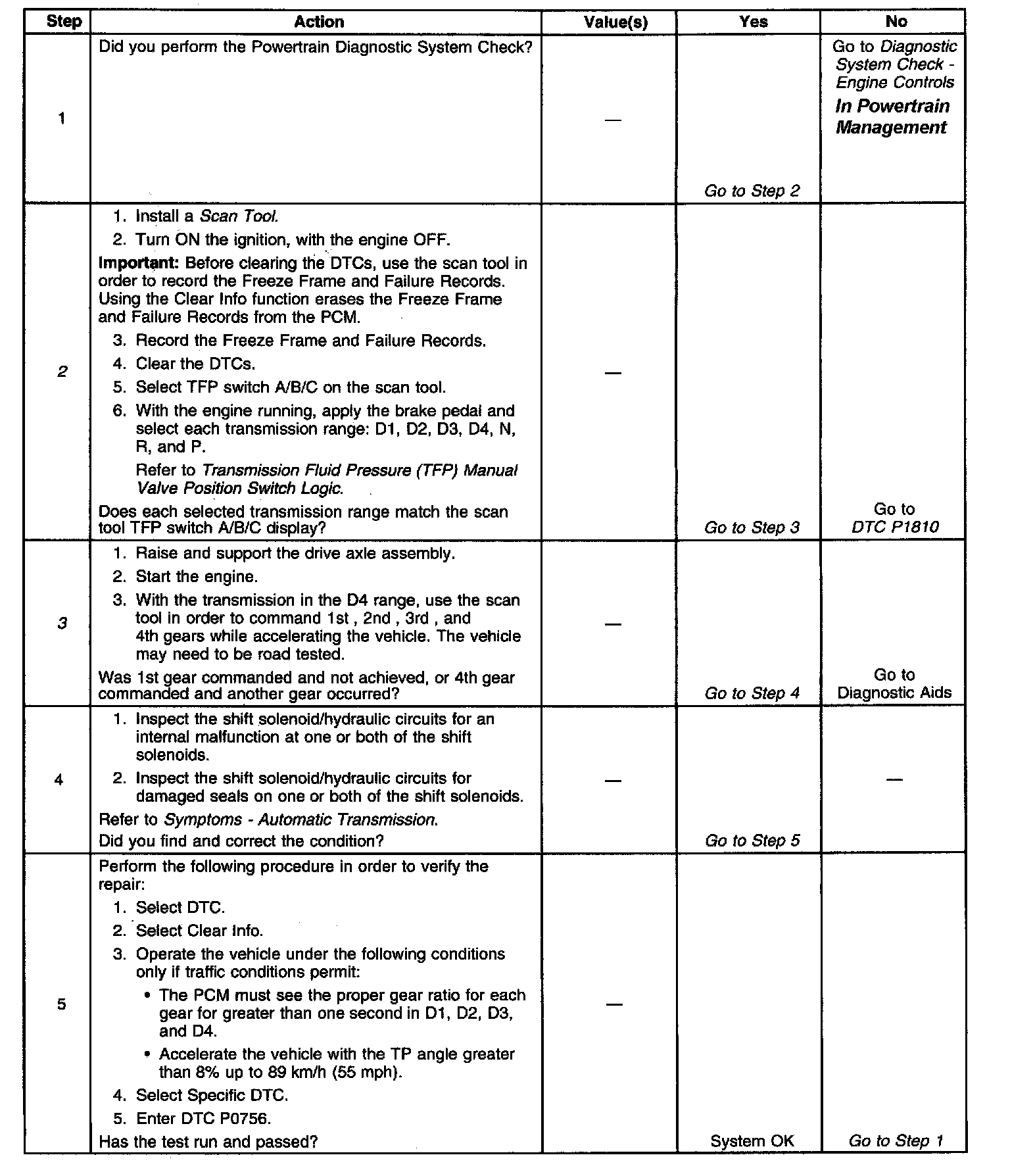 ^ No shift solenoid electrical DTCs P0753 or P0758.