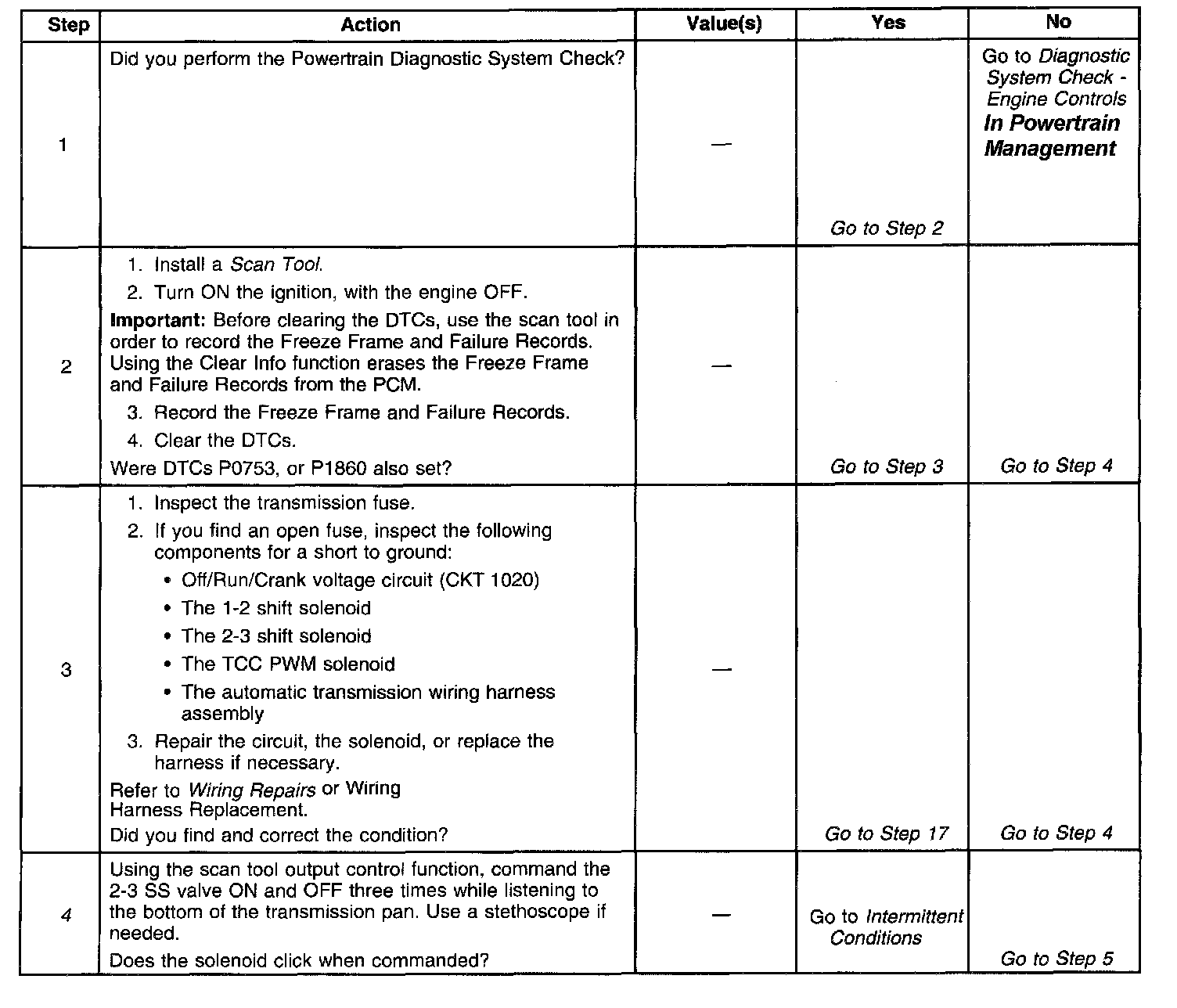 4. This step tests the function of the 2-3 SS valve and the internal wiring harness.