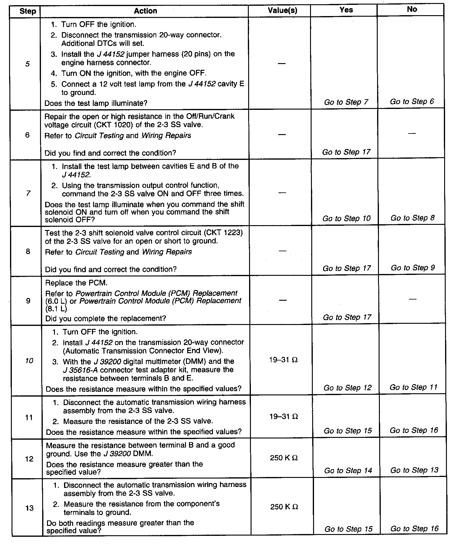5. This step tests the power to the 2-3 SS valve from the ignition through the fuse.