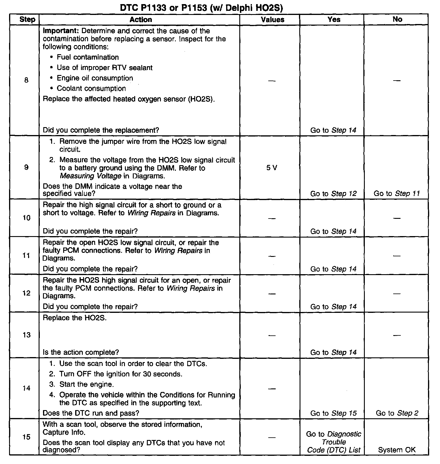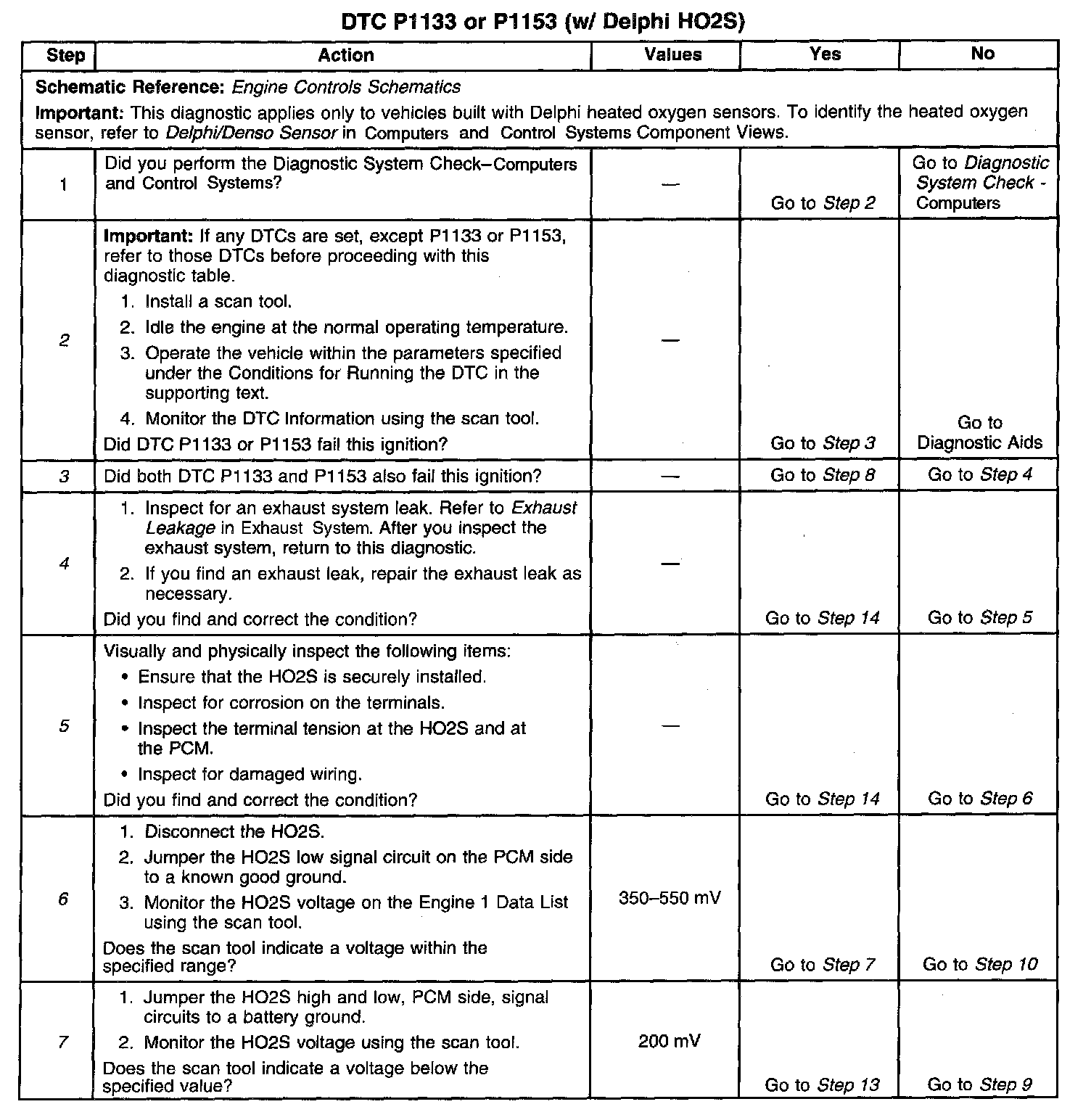 ^ A malfunction in the HO2S heater circuits will cause a DTC P1133 or P1153 to set. Check HO2S heater circuits for intermittent opens/connections.
