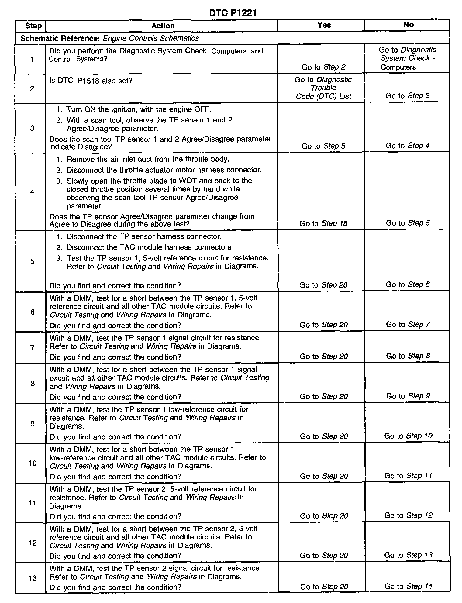 CIRCUIT DESCRIPTIONThe Throttle Position (TP) sensor is mounted on the throttle body assembly. The sensor is actually 2 individual TP sensors within 1 housing. Two separate signal, low-reference and 5-volt reference circuits are used to connect the TP sensor assembly to the Throttle Actuator Control (TAC) module. The 2 sensors have opposite functionality.