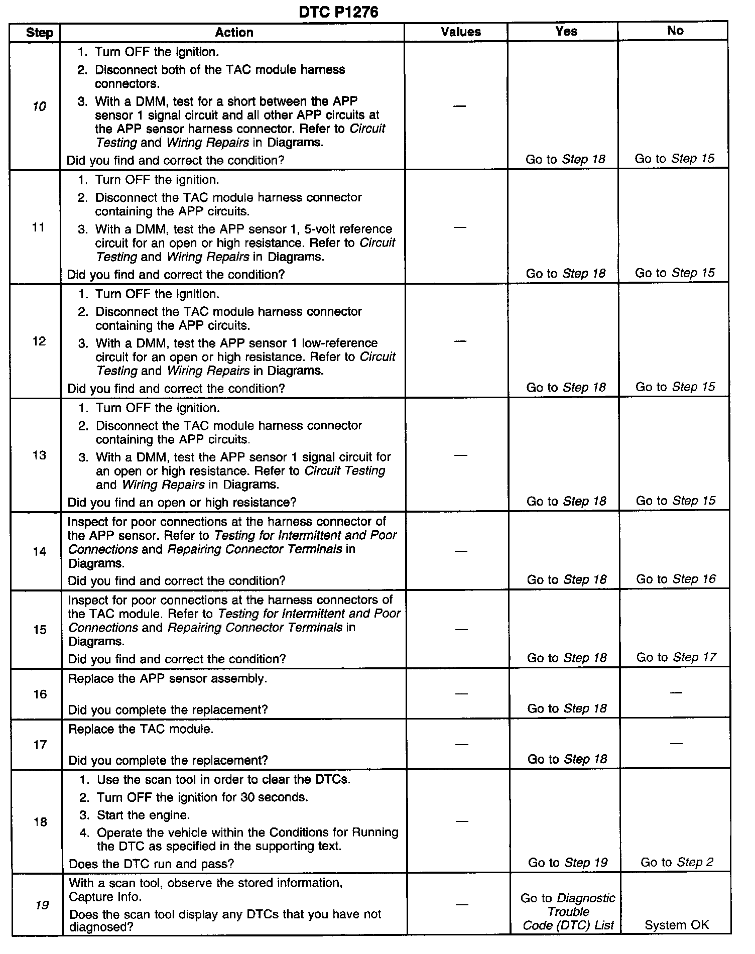 ^ When the TAC module detects throttle movement with a DTC P1275 set, a DTC P1276 also sets.