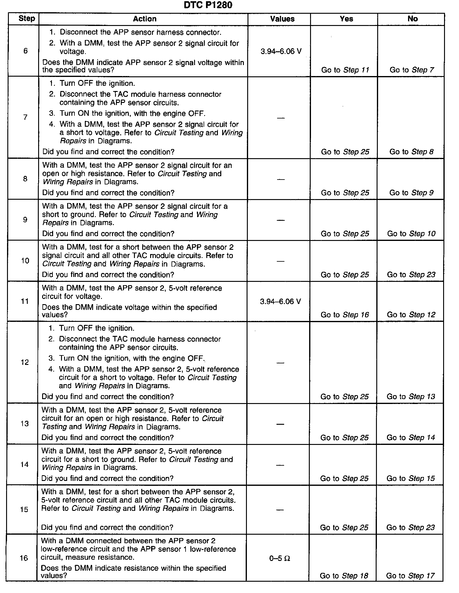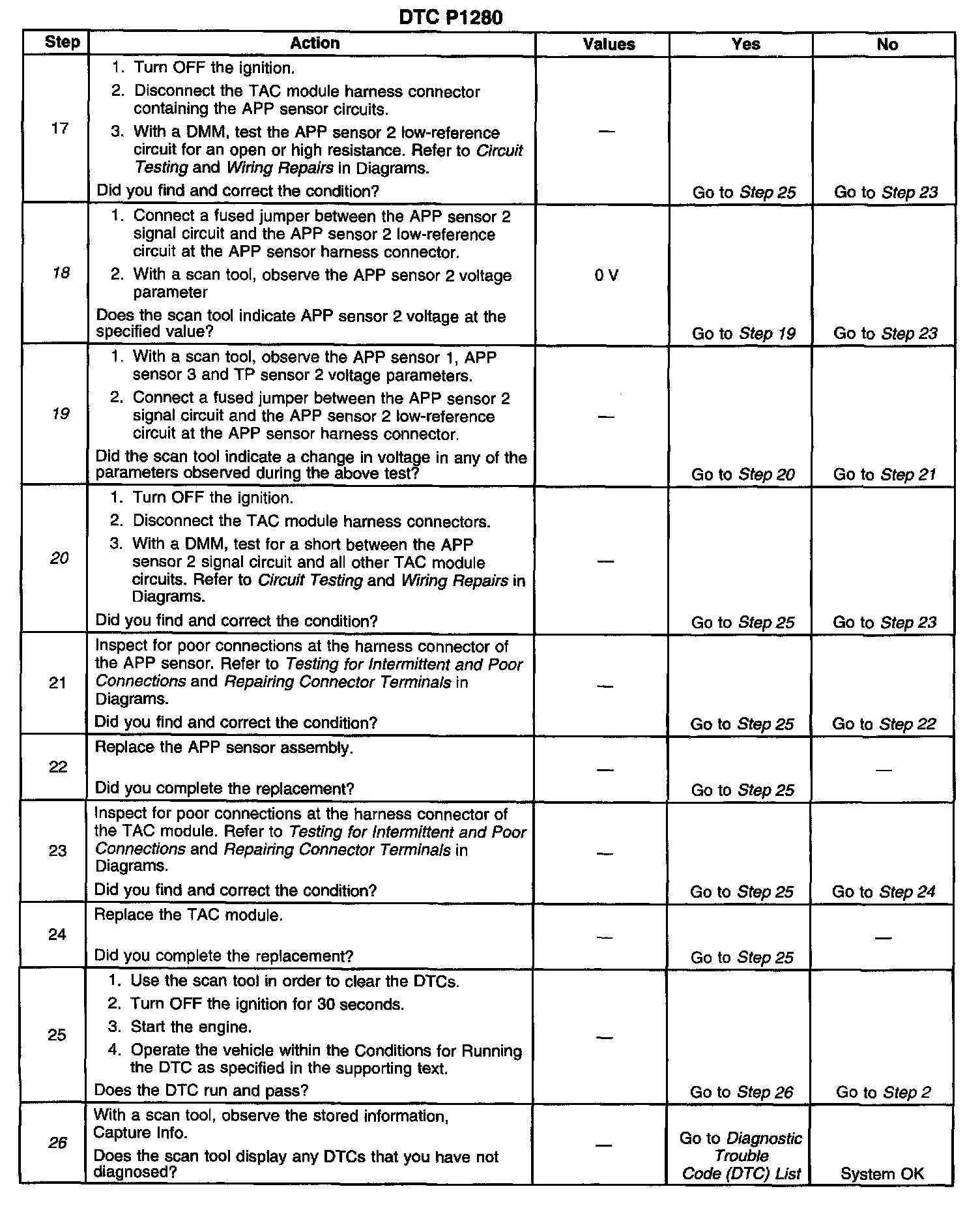 ^ When the TAC module detects throttle movement with a DTC P1280 set, a DTC P1281 also sets.