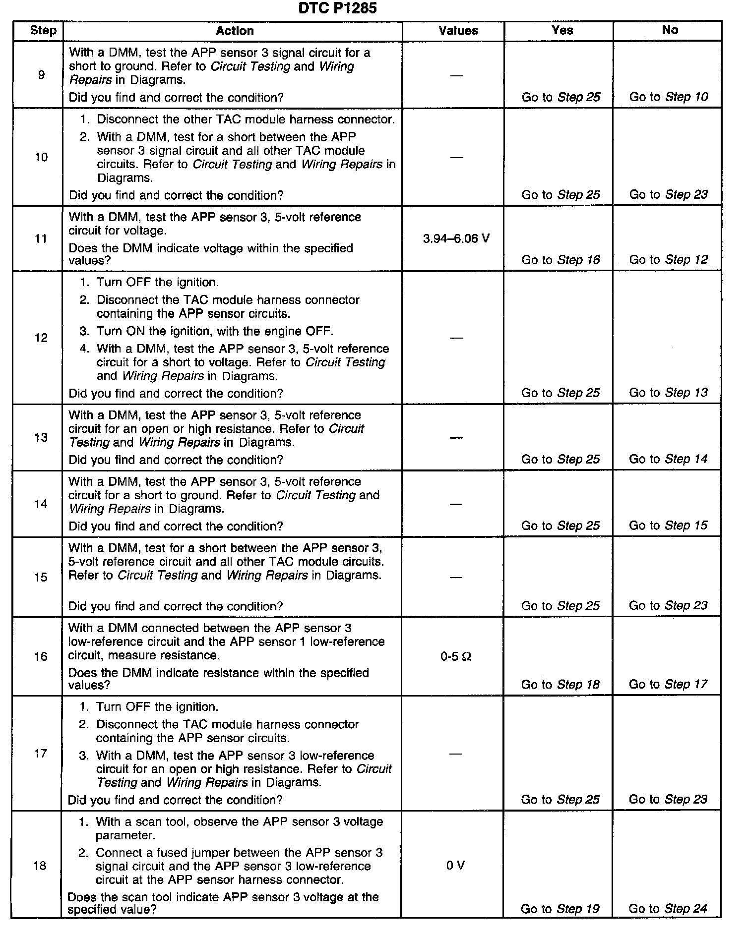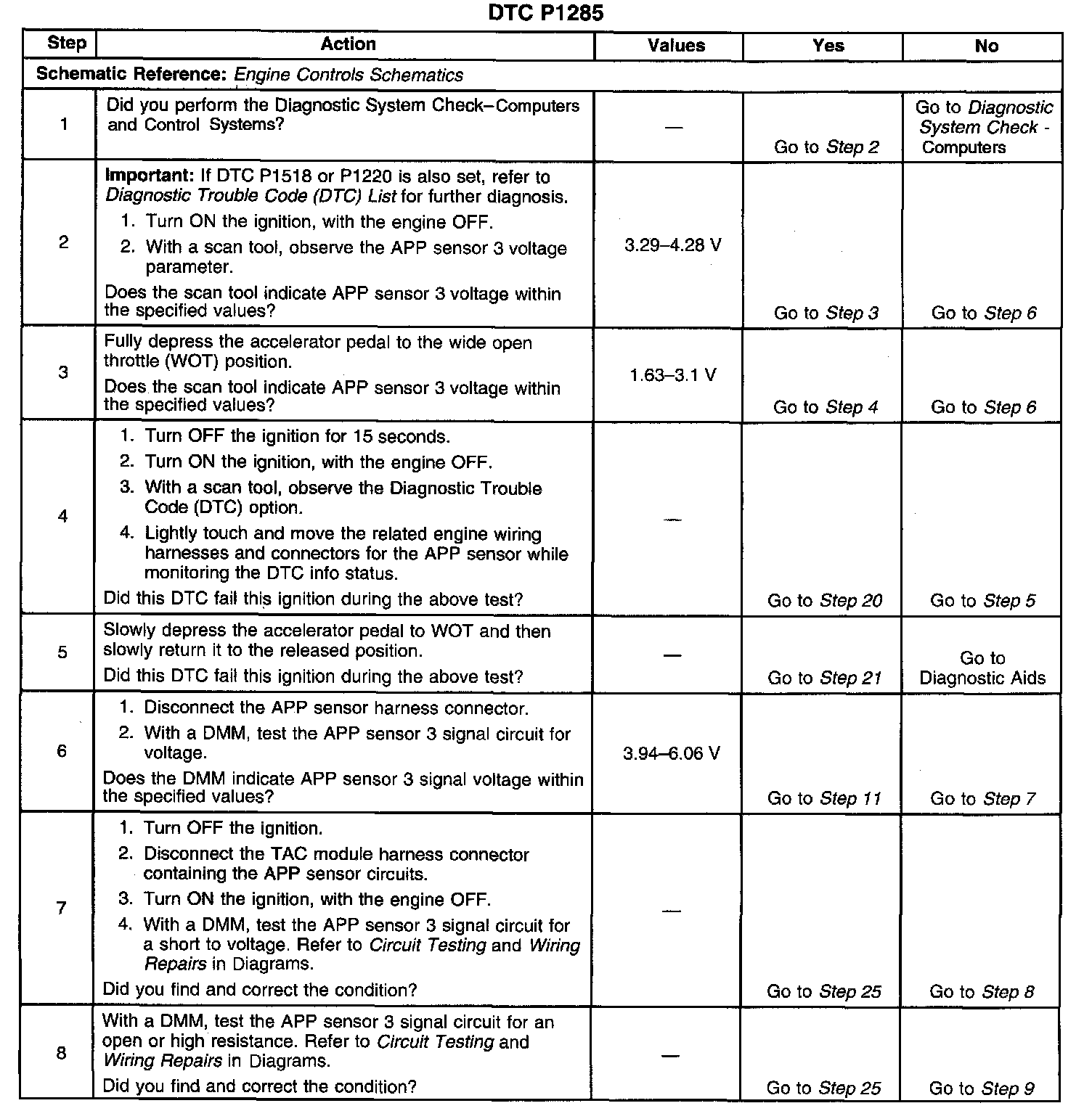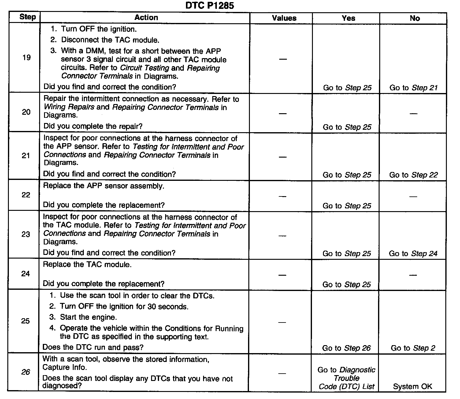 ^ When the TAC module detects throttle movement with a DTC P1285 set, a DTC P1286 also sets.
