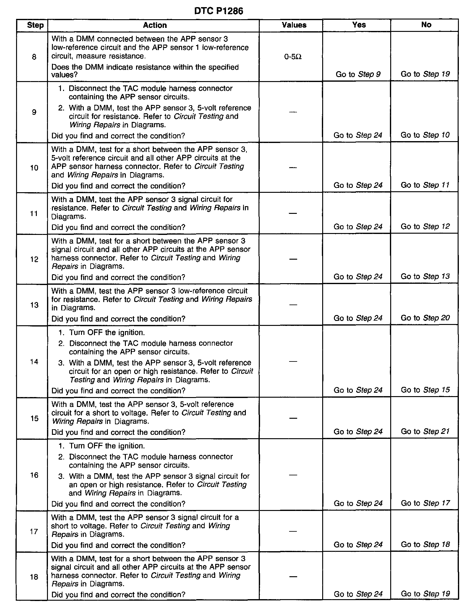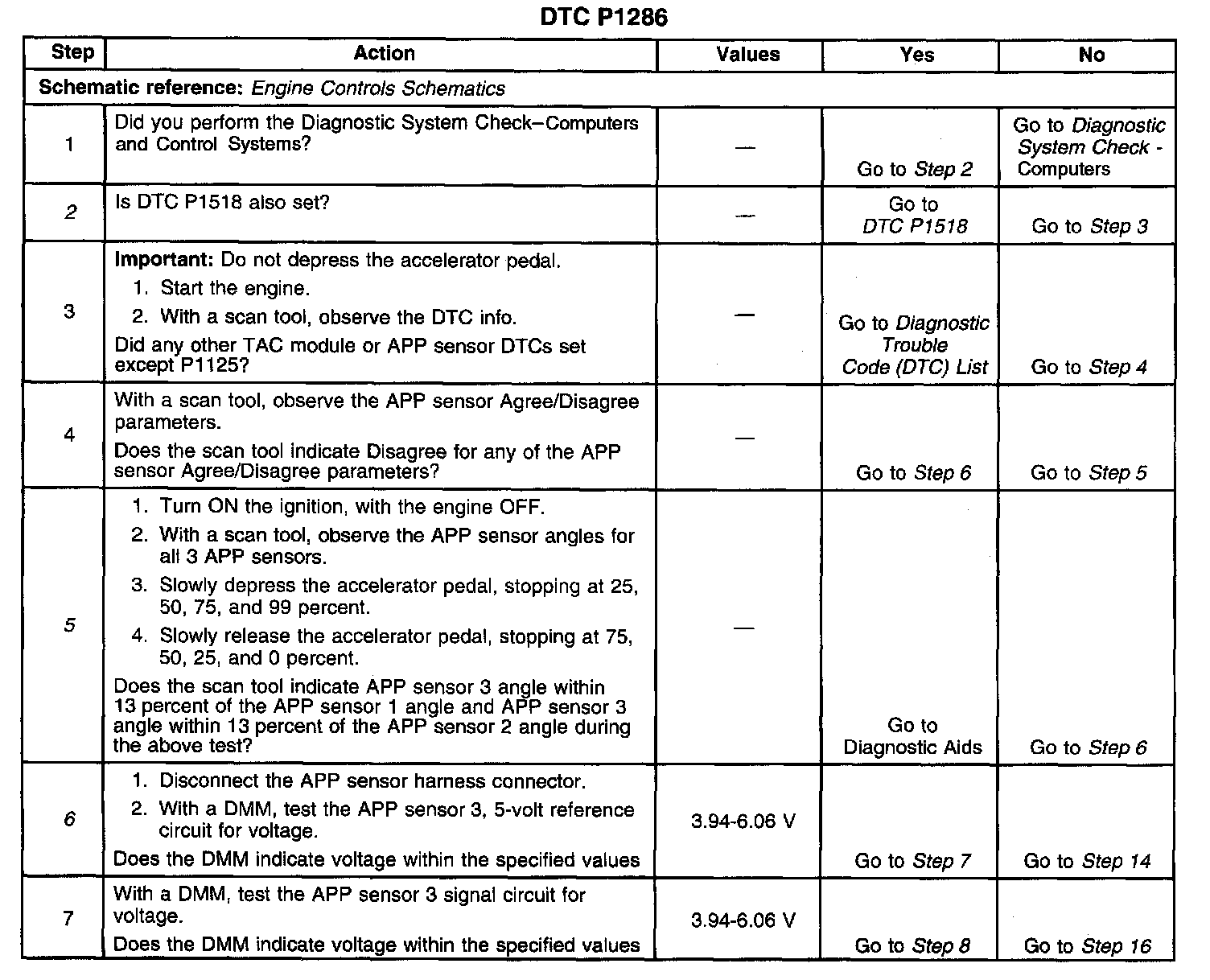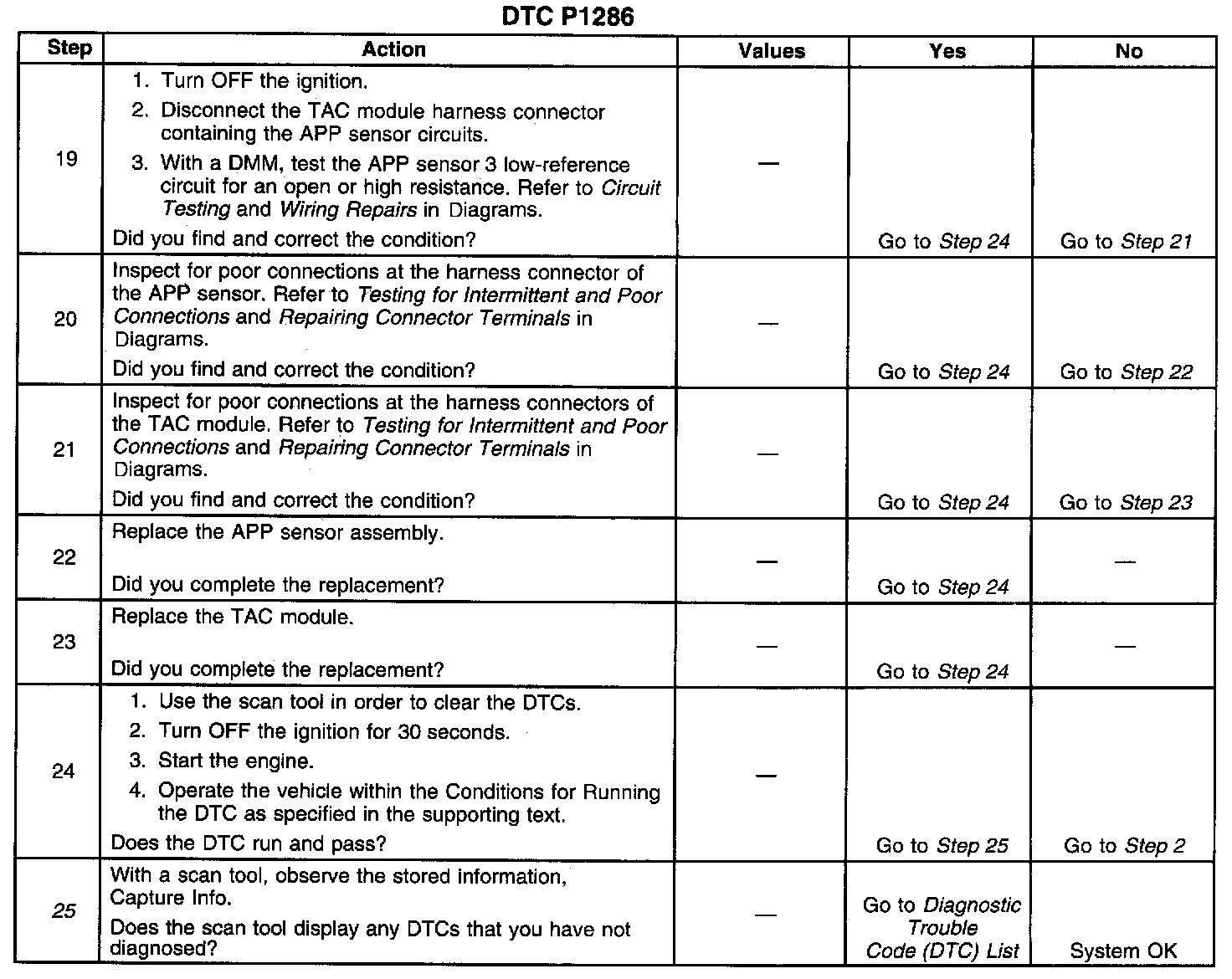 ^ When the TAC module detects throttle movement with a DTC P1285 set, a DTC P1286 also sets.
