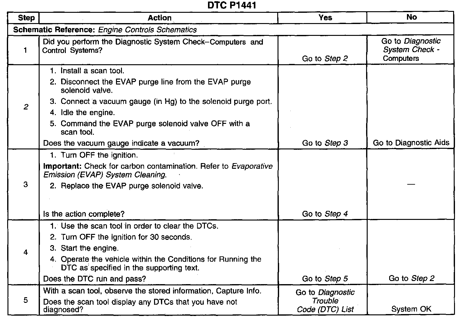 2. This step checks for a EVAP purge solenoid valve that is leaking vacuum to the EVAP system when EVAP system purge is not commanded by the PCM.