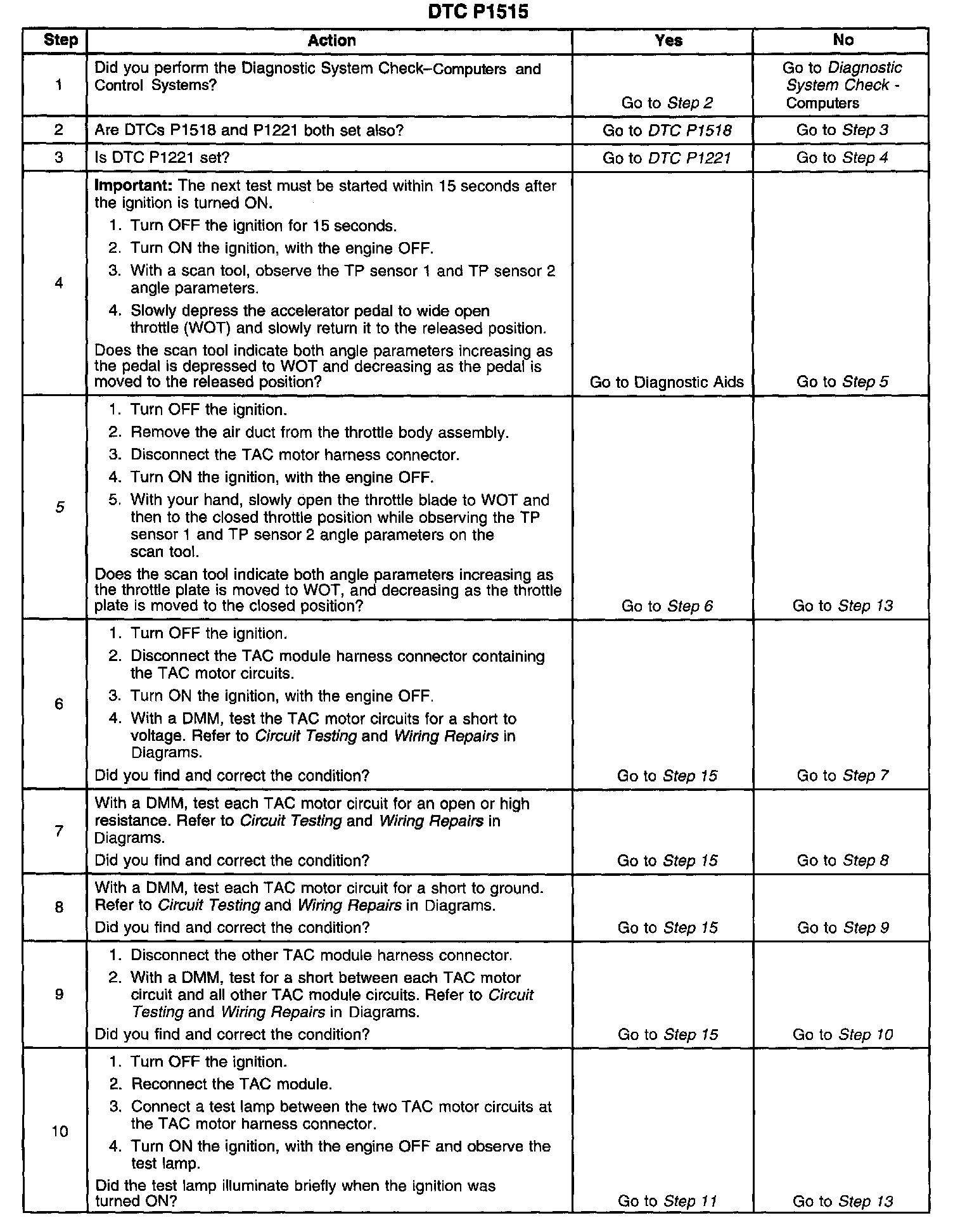 CIRCUIT DESCRIPTIONThe commanded throttle position, based on Accelerator Pedal Position (APP) and possibly other limiting factors, is compared to the actual throttle position. The 2 values should be within a calibrated range of each other. Both the Powertrain Control Module (PCM) and the Throttle Actuator Control (TAC) module redundantly monitor the commanded and actual throttle position. This Diagnostic Trouble Code (DTC) sets if the PCM detects an out-of-range condition between commanded and actual pedal position.