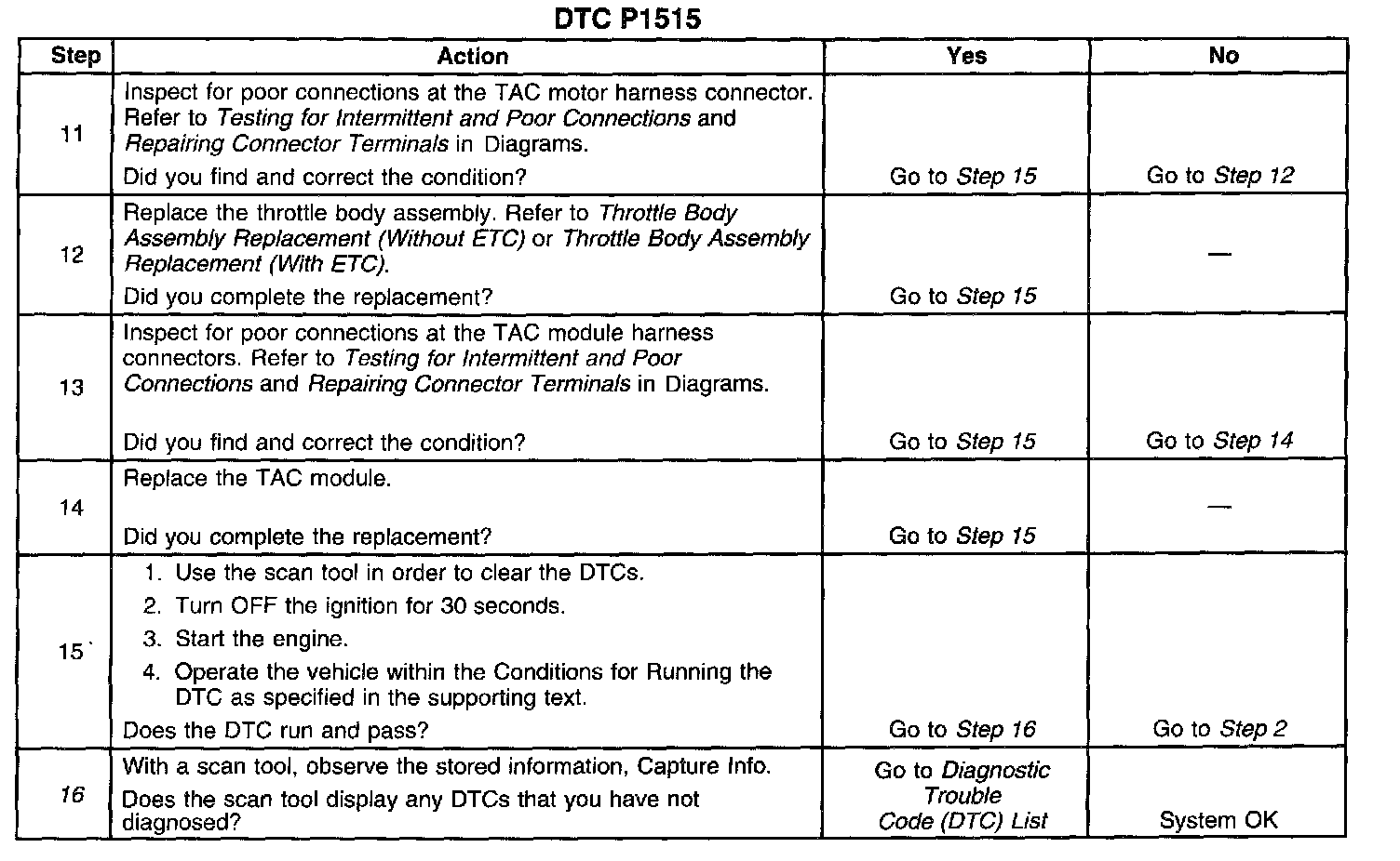 ^ When the TAC module detects a condition within the TAC system, more than 1 TAC system related DTC may set. This is due to the many redundant tests run continuously on this system. Locating and repairing an individual condition may correct more than 1 DTC. Disconnecting components during testing may set additional DTCs. Remember this if you review the stored information in Capture Info.