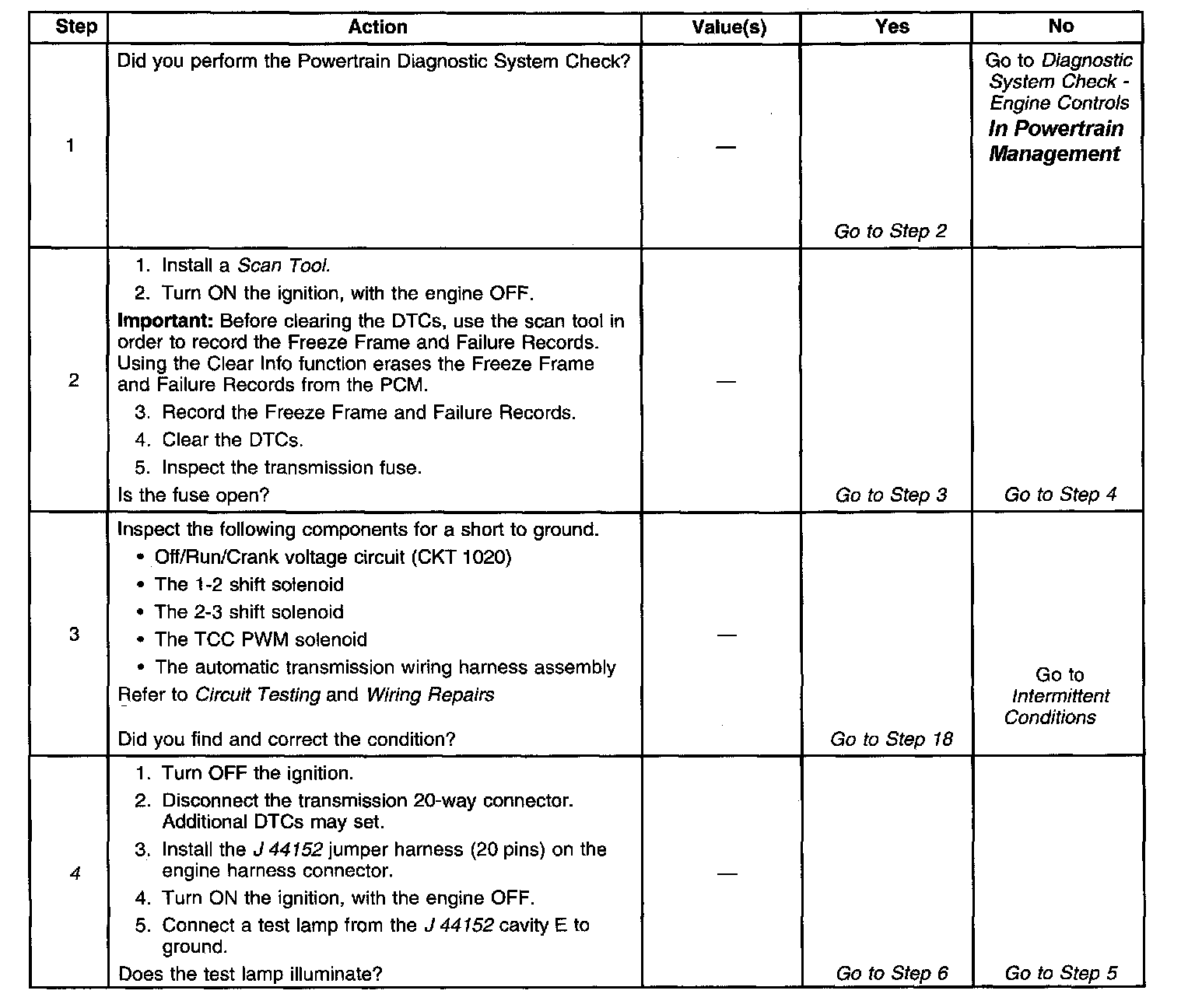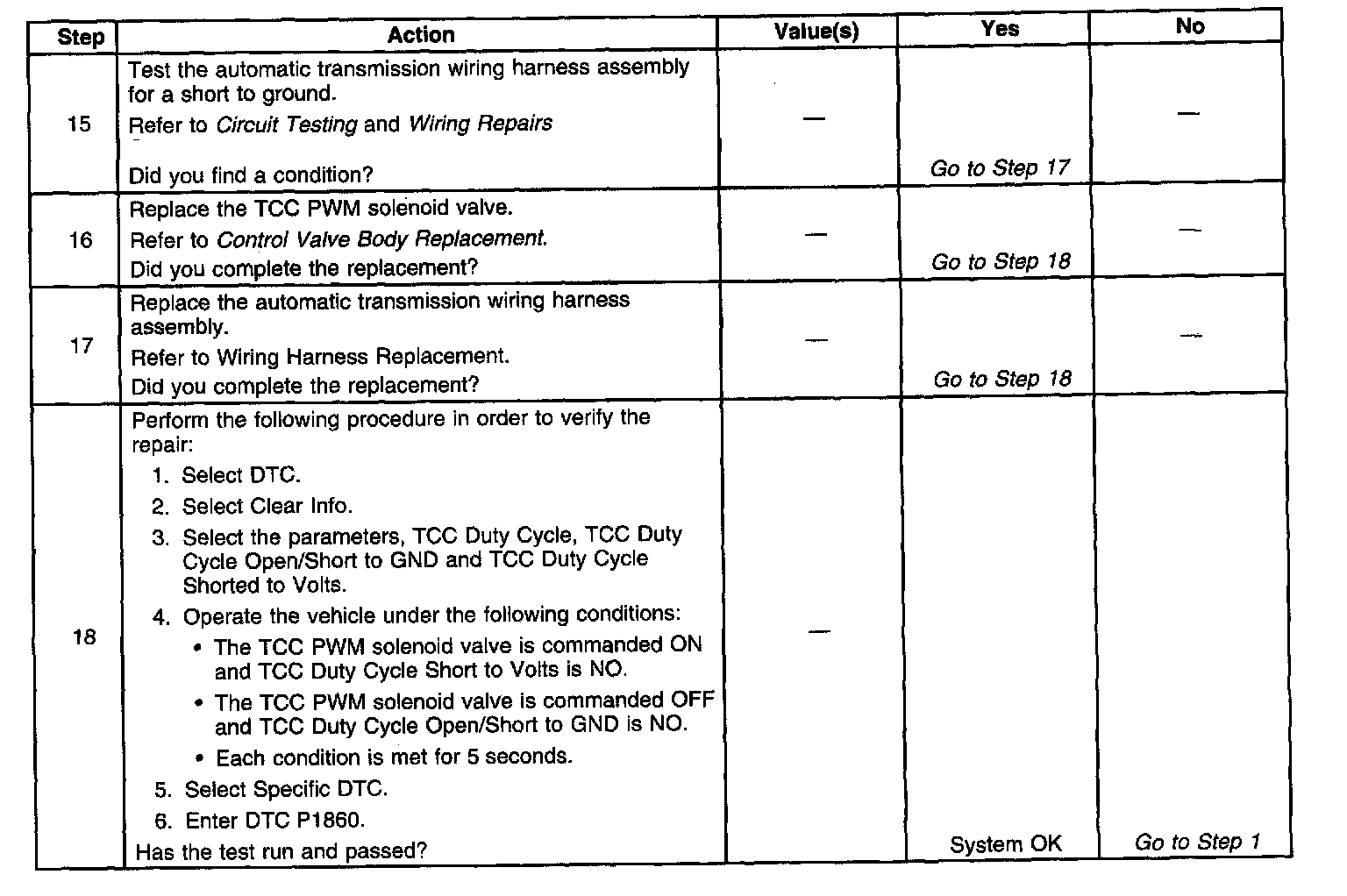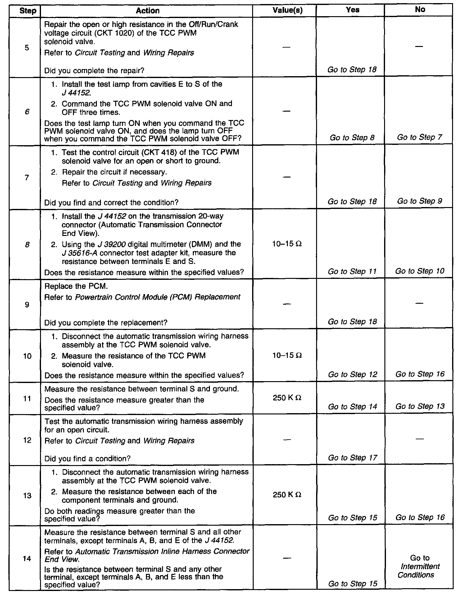 8. This step tests the resistance of the TCC PWM solenoid valve and the internal wiring harness.