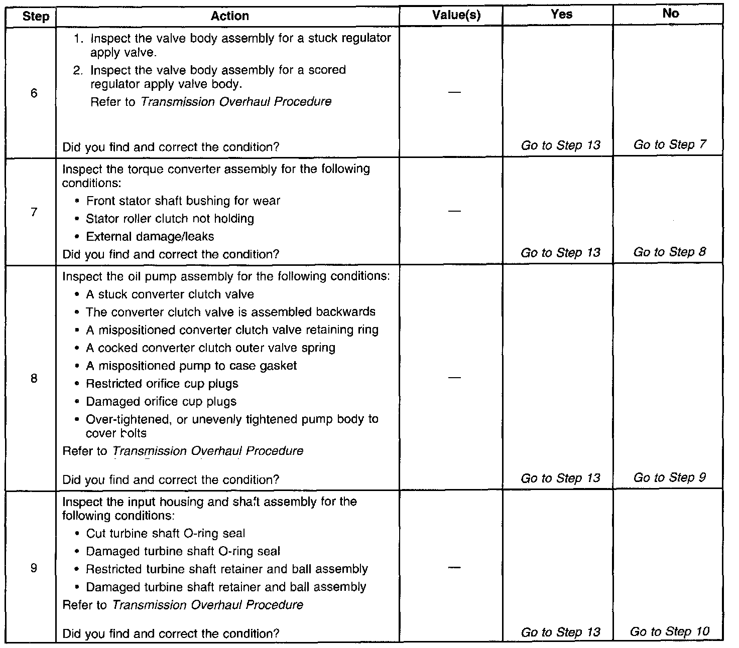 If the TCC slip speed is 130-800 RPM for 7 seconds, then the PCM will command maximum line pressure and freeze shift adapts from being updated.