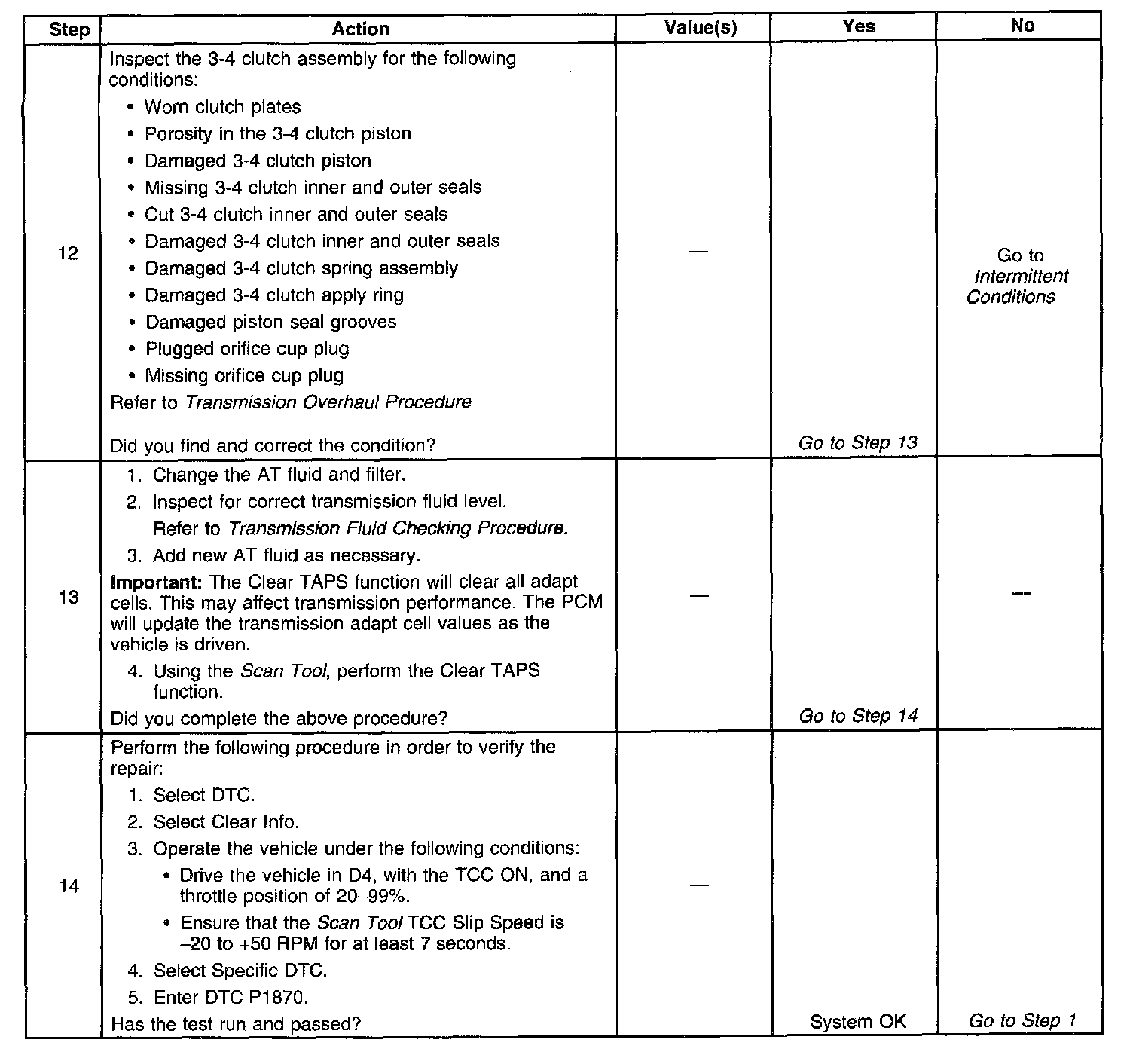 When the PCM detects excessive TCC slip when the TCC should be engaged, then DTC P1870 sets. DTC P 1870 is a type B DTC.