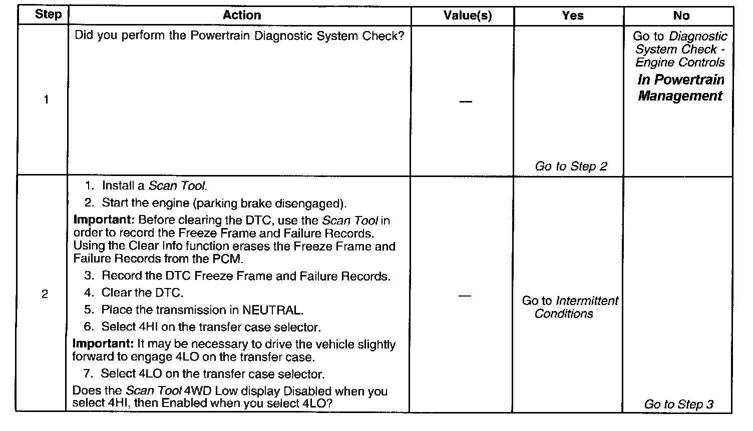 ^ The PCM commands a normal shift pattern (not a 4WD low shift pattern).