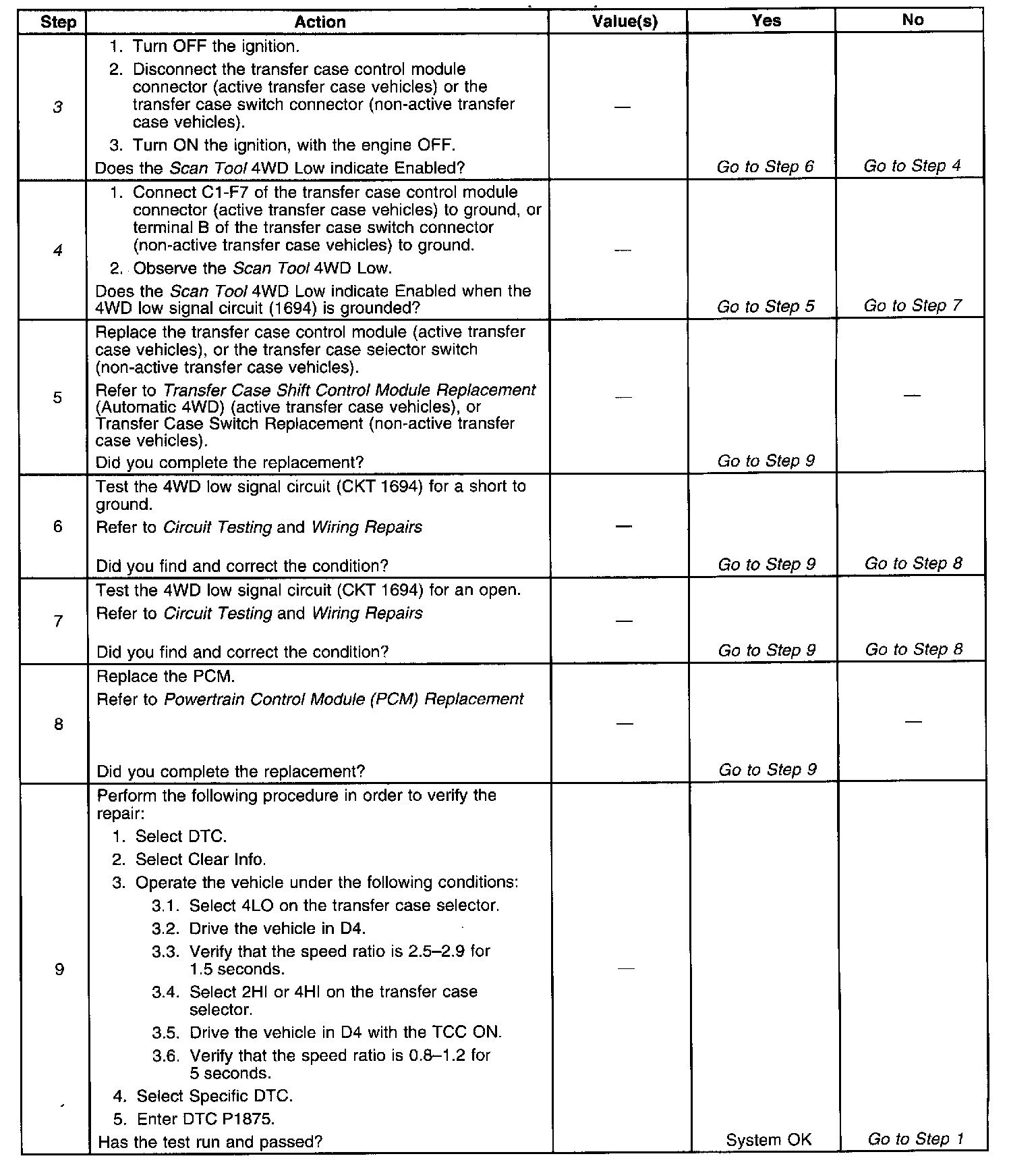 3. This step tests for a short to ground in the 4WD low signal circuit (CKT 1694).