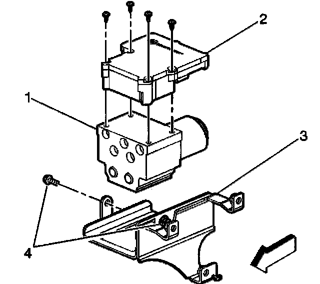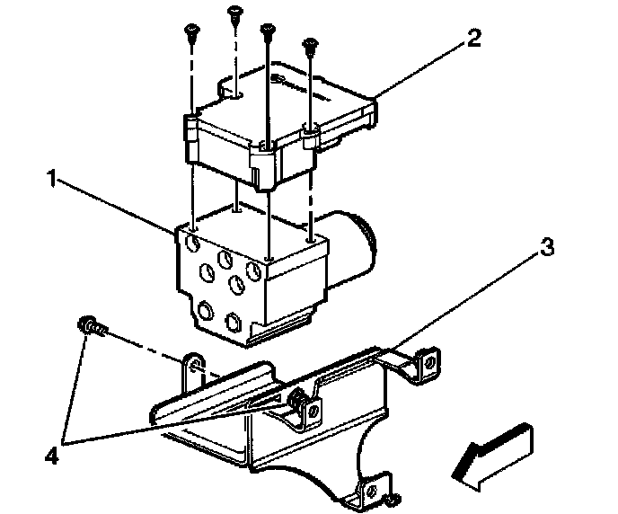 3. Install or tighten the EHCU bracket mounting bolts (4).