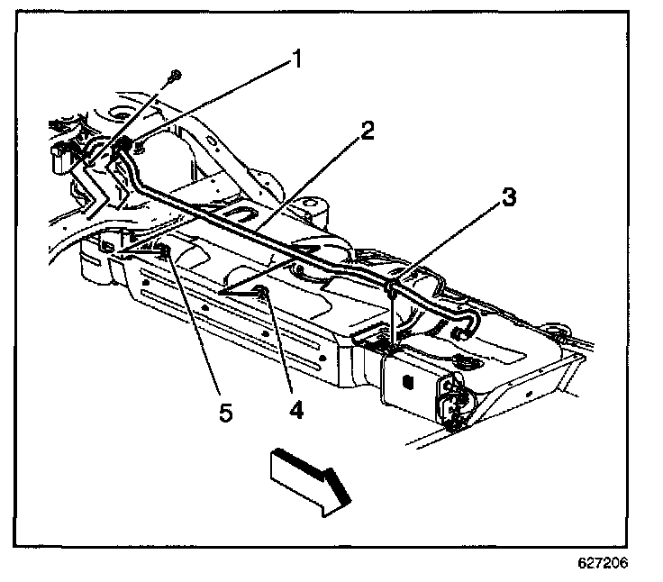 4. Disconnect the vent valve pipe (3) at the EVAP canister bracket.