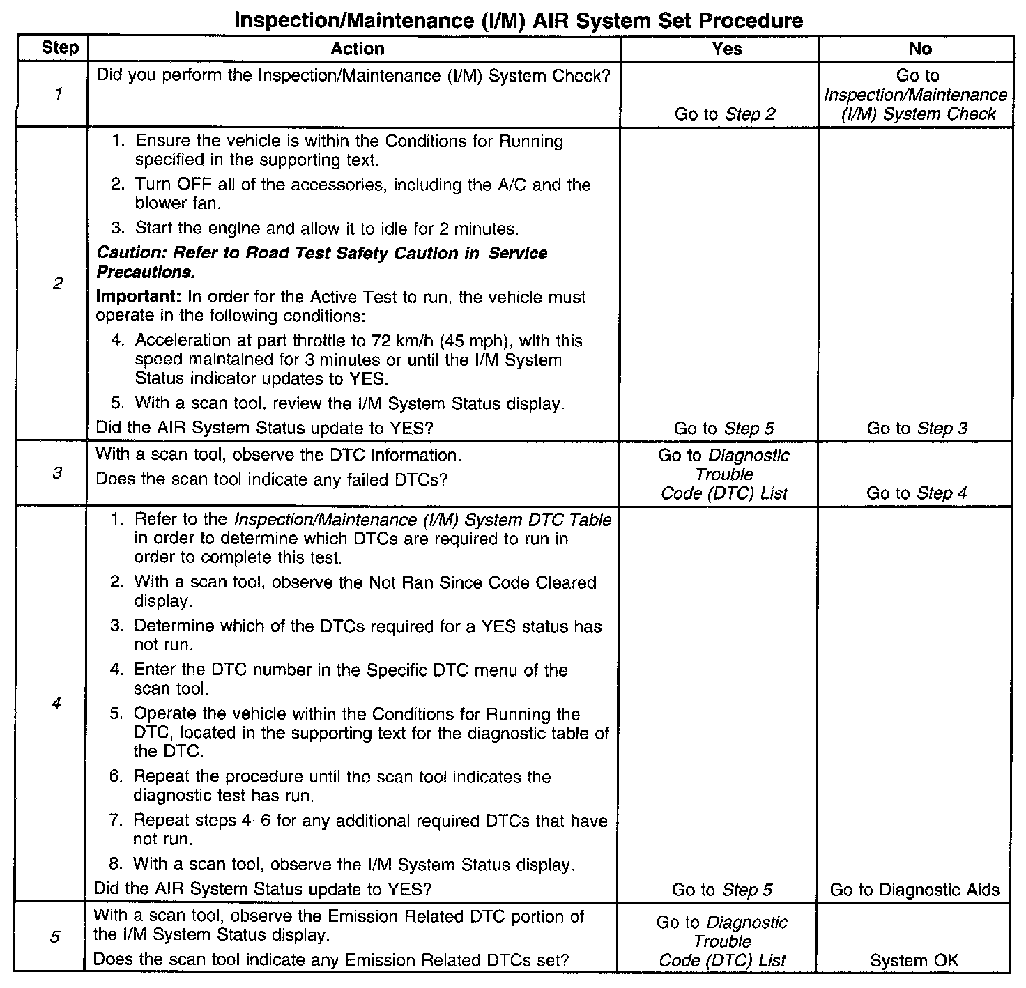 1. Perform the I/M System Check before performing this test. Failure to do so may result in difficulty updating the status to YES. Inspection/Maintenance (I/M) System Check