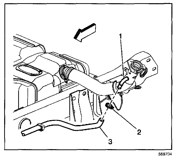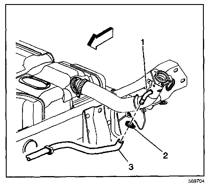 7. Disconnect the fuel vent hose (3) from the fill tube.