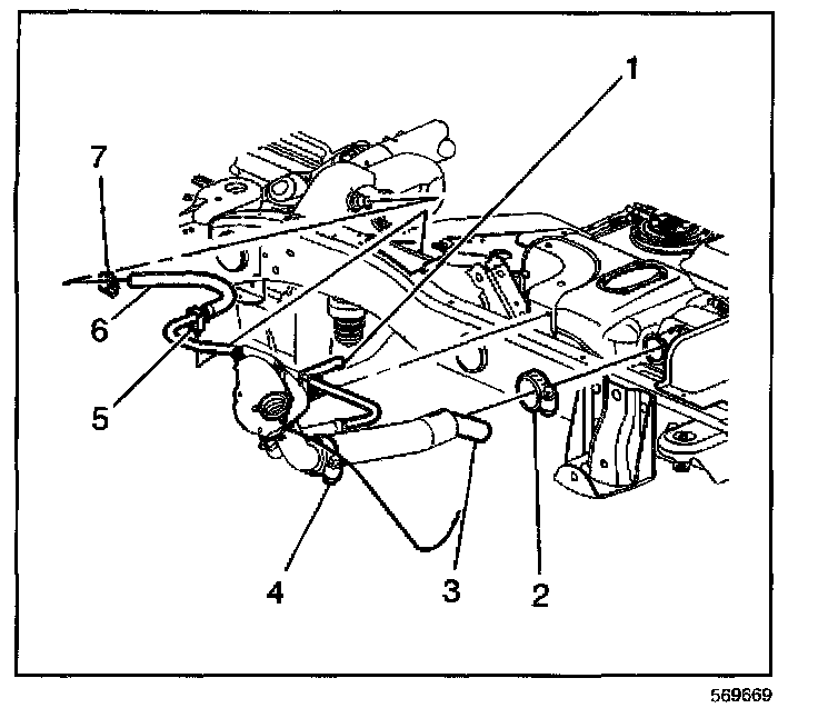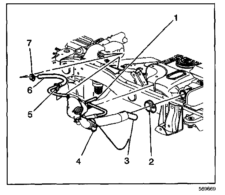 5. Disconnect the rear axle vent hose from the retainer on the fuel till pipe.