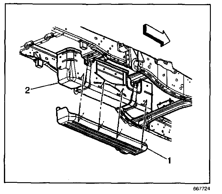 4. Remove the fuel tank shield (2).