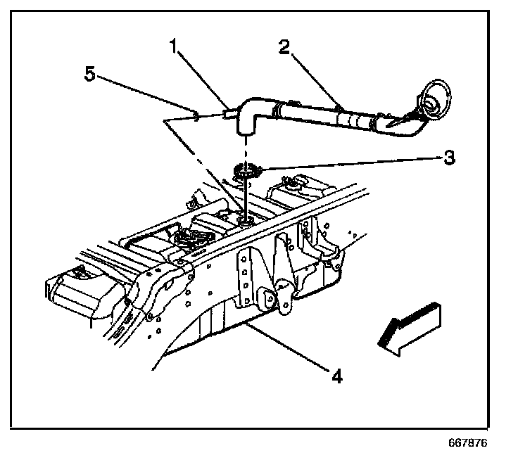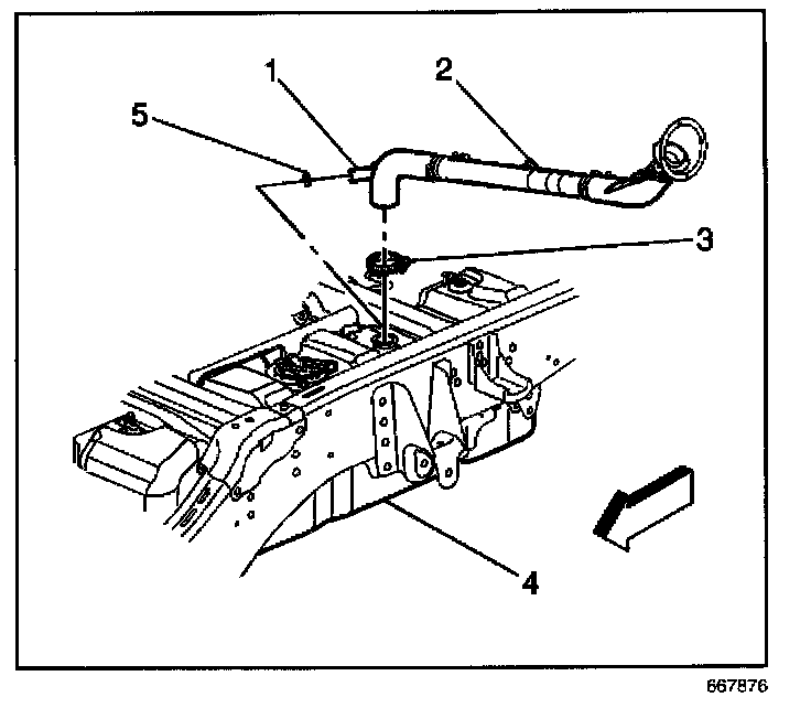 5. Disconnect the fuel fill and vent pipe (1) from the fuel tank.